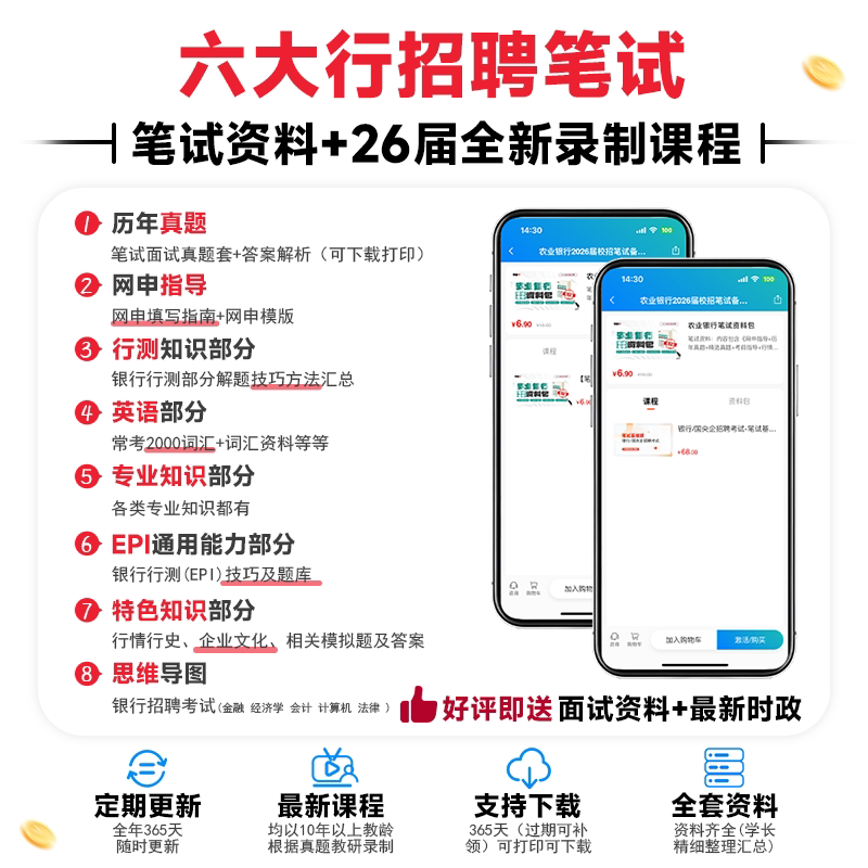 📚 2026银行笔试真题中国建设工商农业银行招聘考试资料题库APP网课