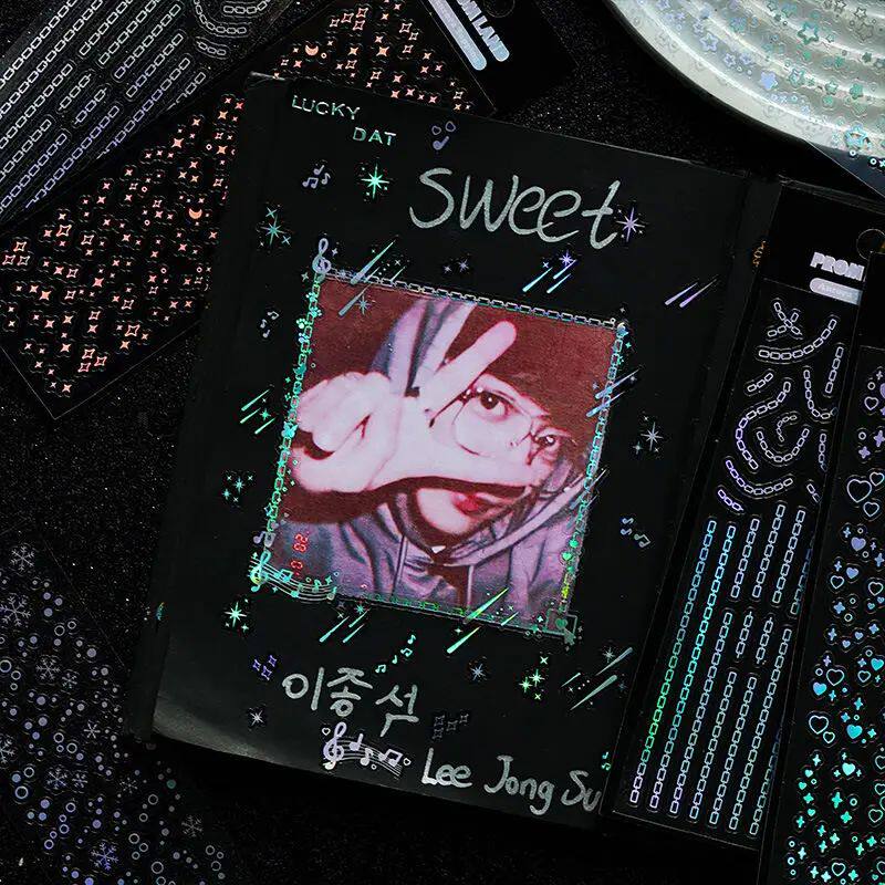 📚 12 Sheets Waterproof Glittering Laser Stars Dot Decorative S