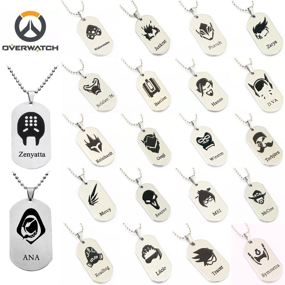 📚 守望先锋周边源氏死神半藏安娜DVA不锈钢英雄狗牌项链钥匙扣挂件