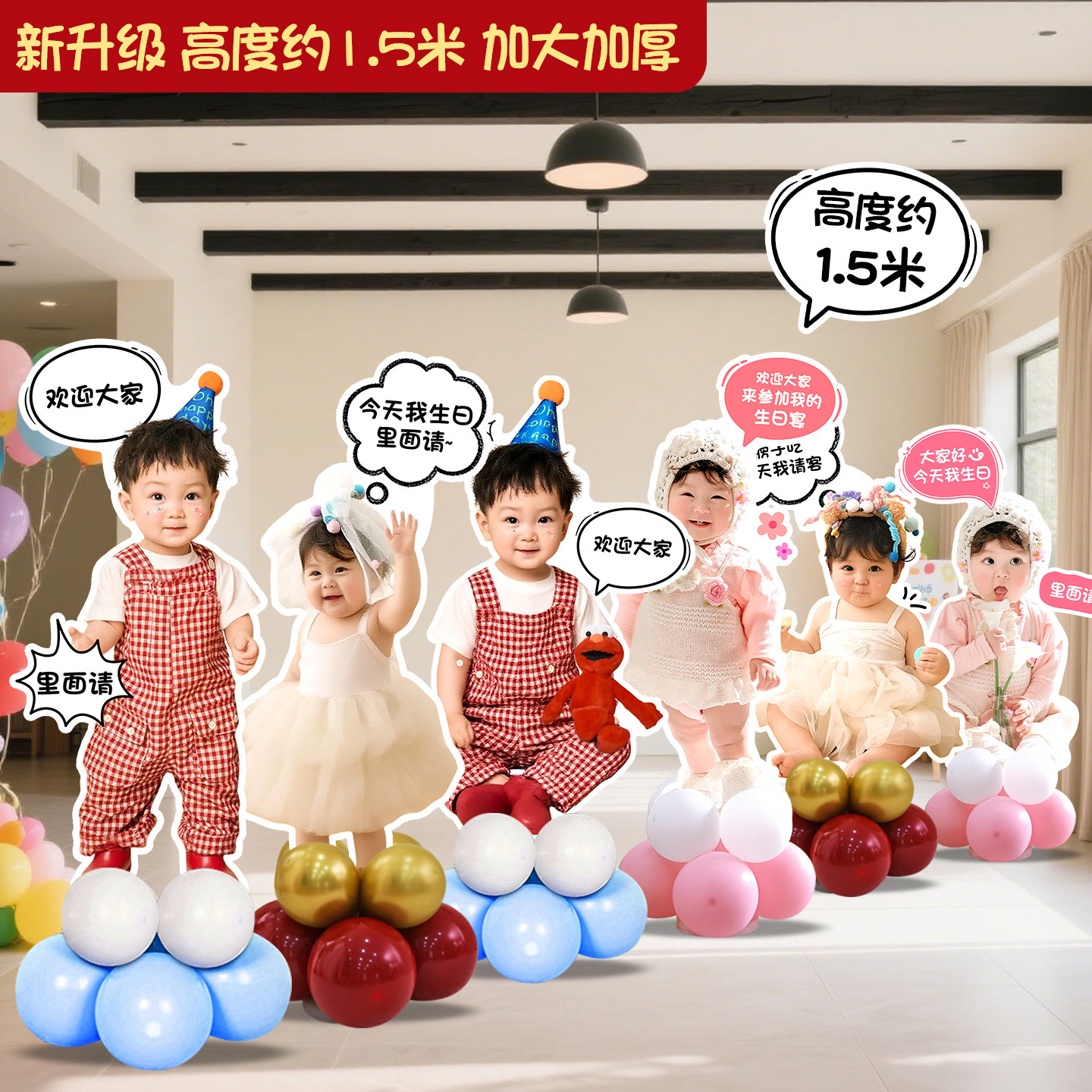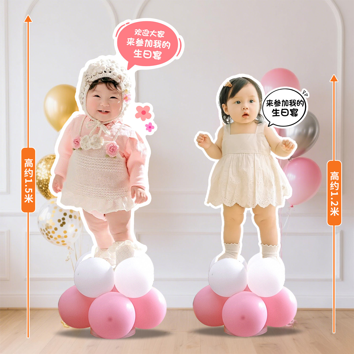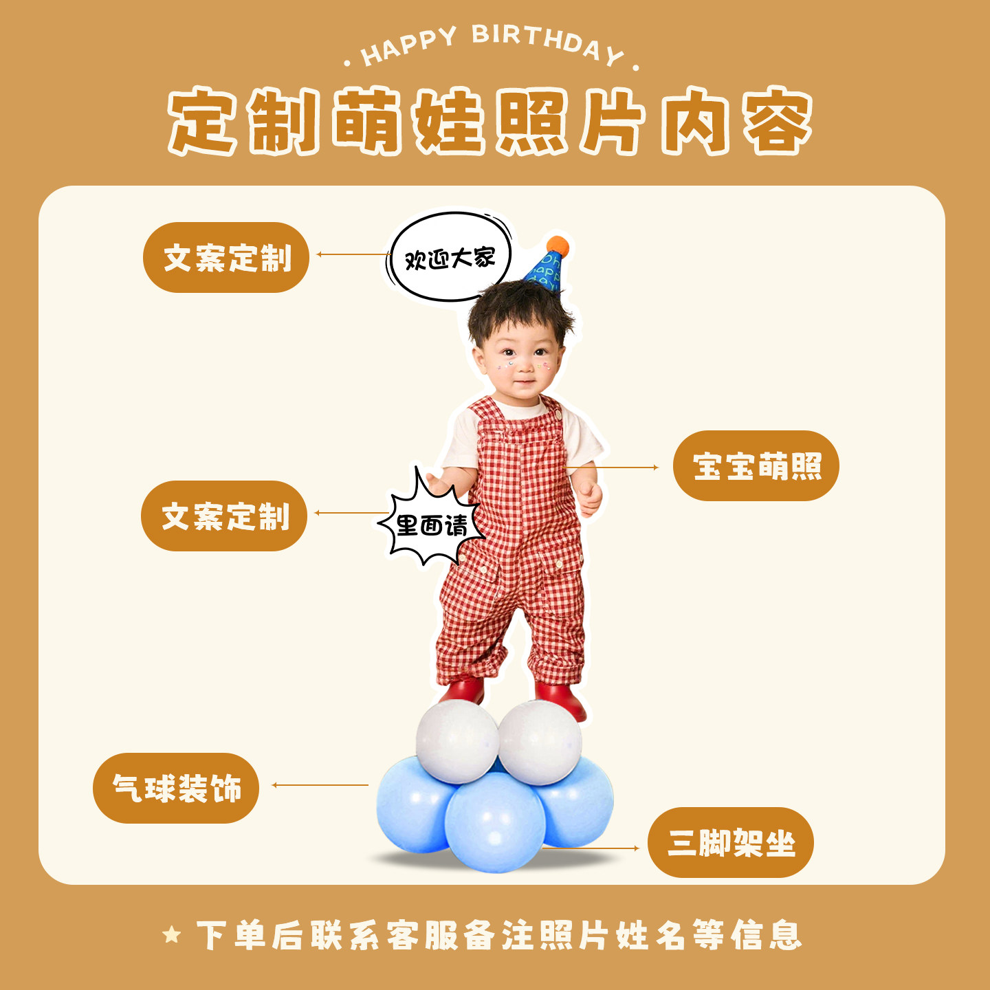 📚 宝宝百日宴周岁生日迎宾牌人形立牌装饰满月百天场景kt板背景定制