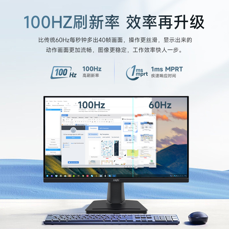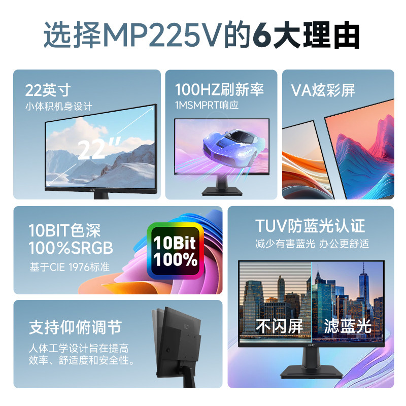 📚 微星21.5英寸100HZ台式电脑显示器屏幕MP225V外接笔记本1080P屏24