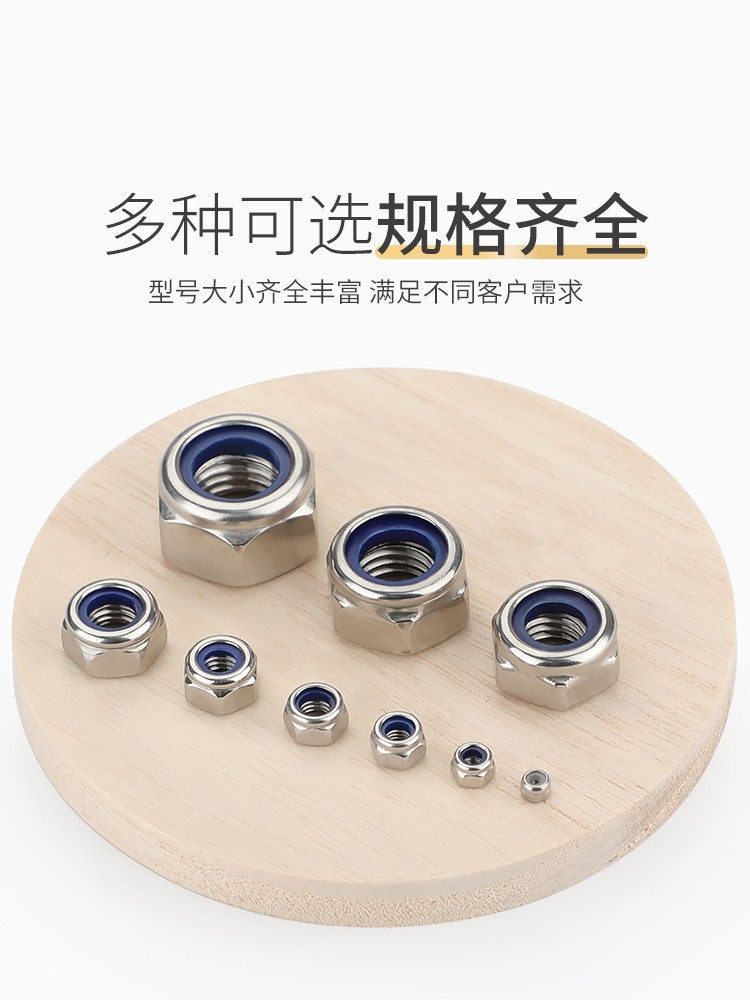 📚 304不锈钢加厚尼龙锁紧螺母GB/T889.1防松六角螺丝帽M3M4M5M6-M24