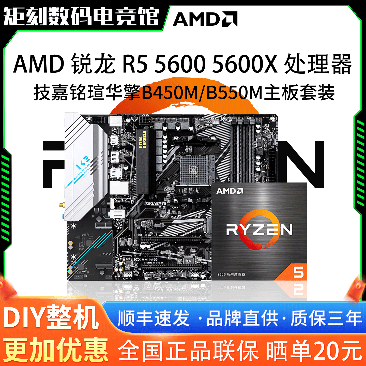 📚 AMD锐龙R5 5600 5600X散片技嘉A520M铭瑄B450华擎B550主板CPU套装