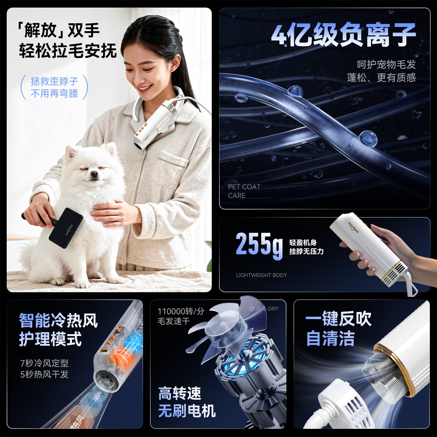 📚 神宝无刷电机宠物美容师造型挂脖吹风机泰迪比熊猫狗负离子拉毛机