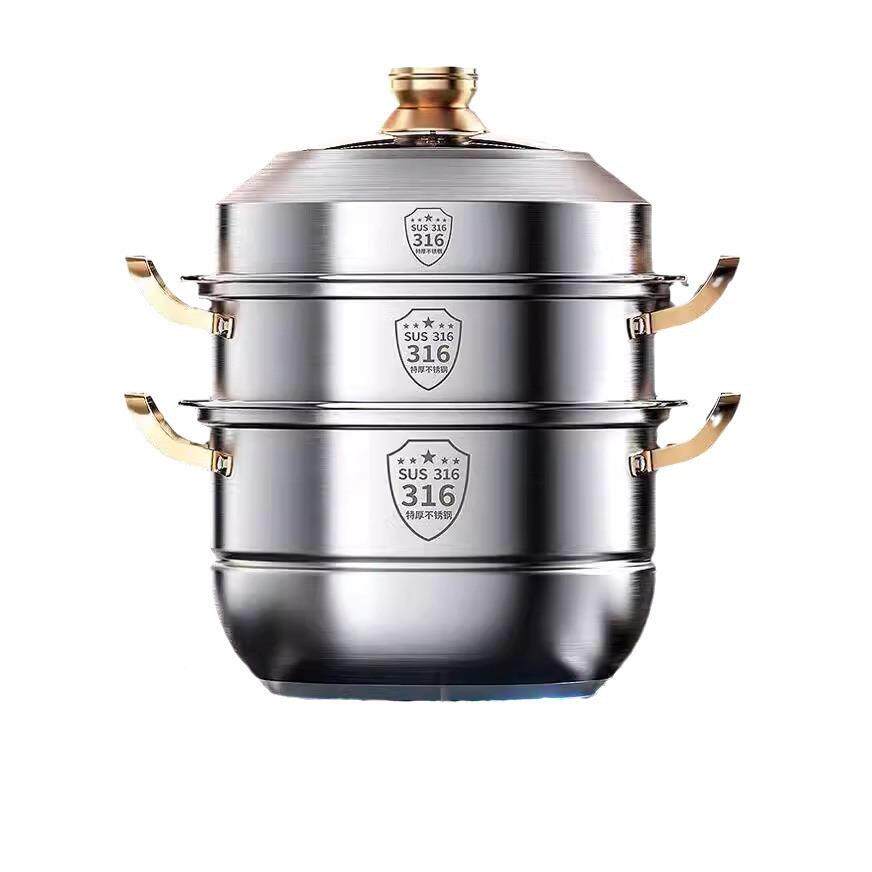 📚 蒸锅磁316不锈钢家用食级层28cm-40c304加厚汤锅品蒸馒头双三四层