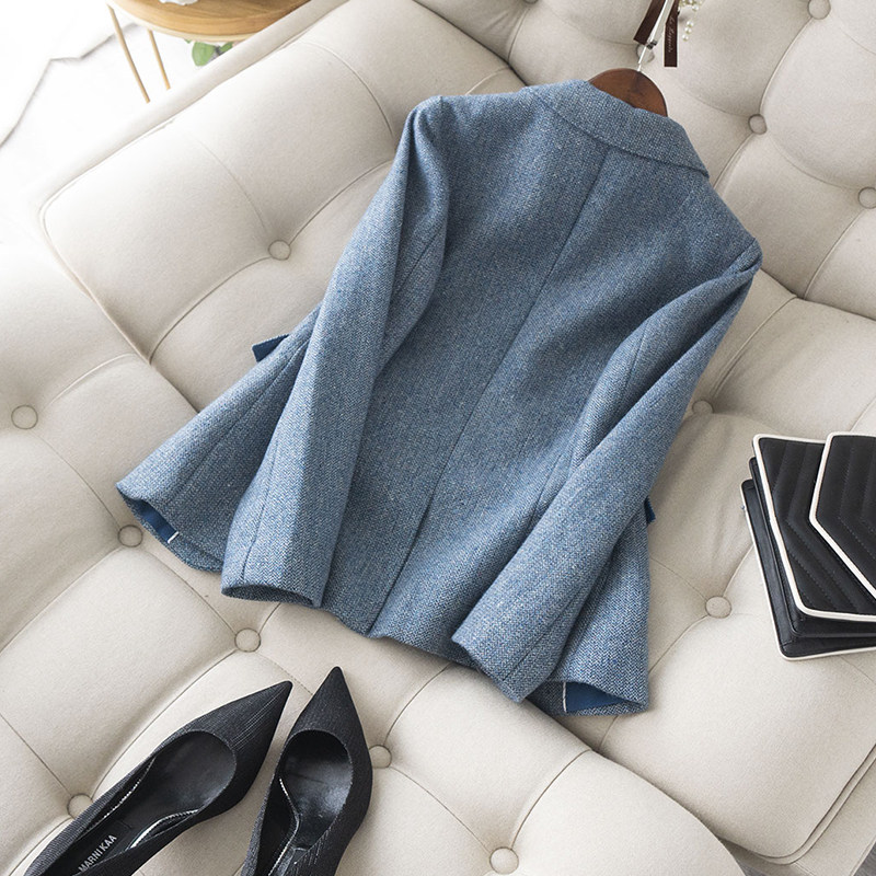 📚 日系精品小西装少见孔雀蓝夹闪修身百搭一粒扣西服女25年春新款女