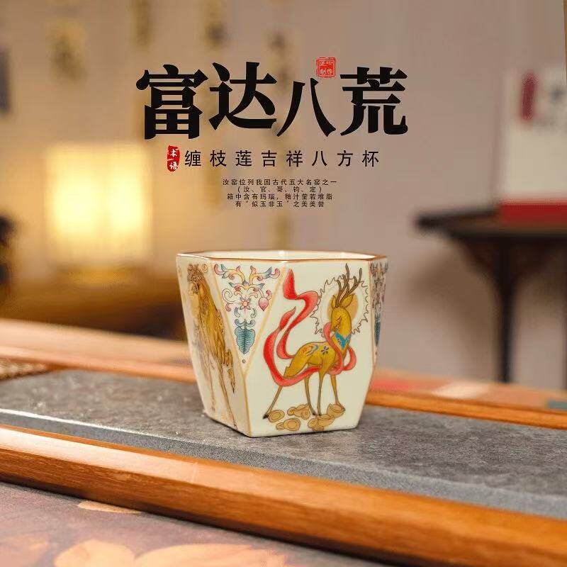 📚 国潮新款汝窑茶杯缠枝莲吉祥八方杯复古大公鸡茶盏主人杯单杯