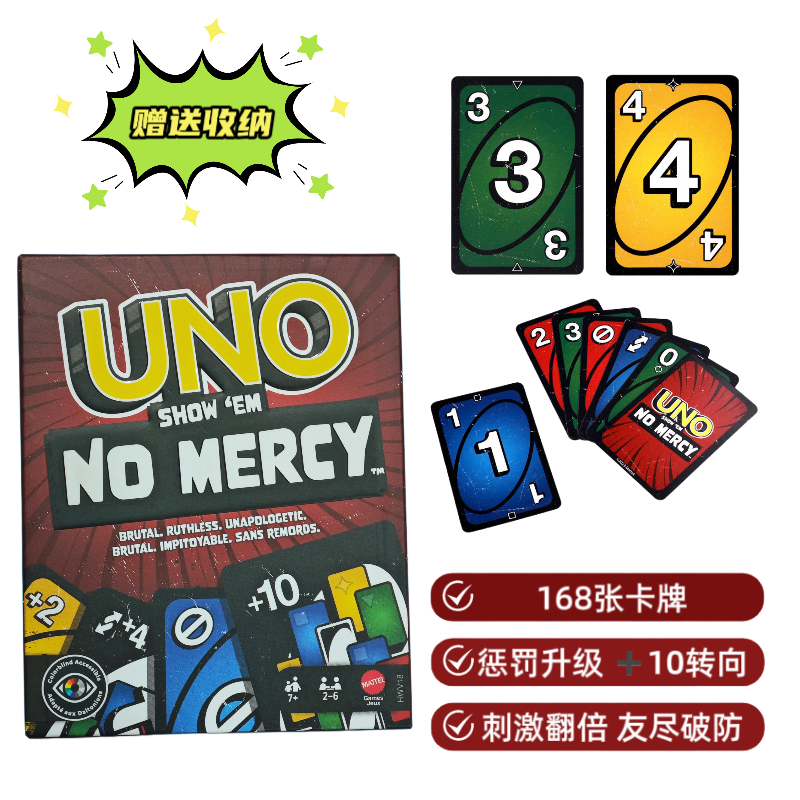 📚 正版uno flip双面可反转纸牌优诺联名防水卡牌游戏毫不留情扑克牌