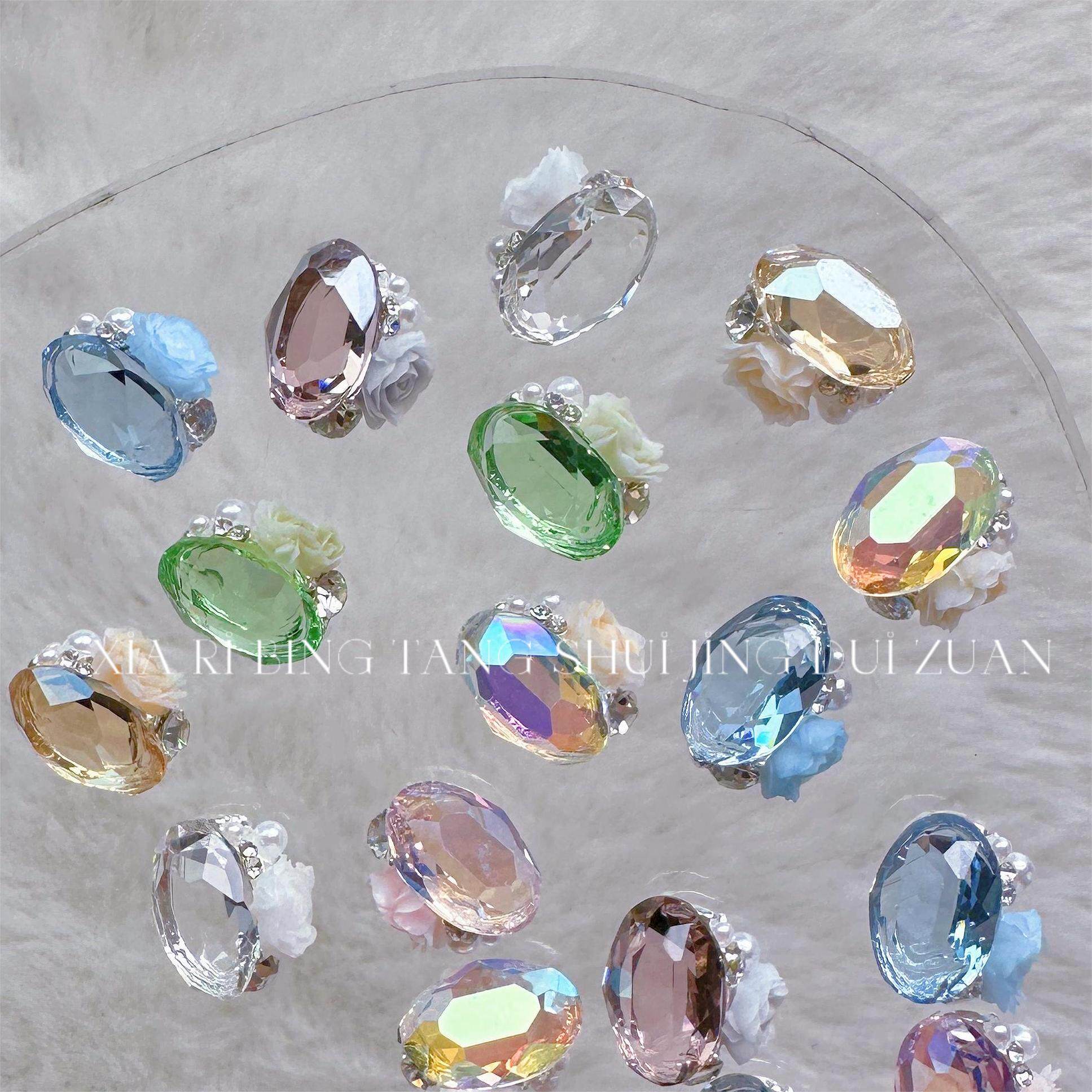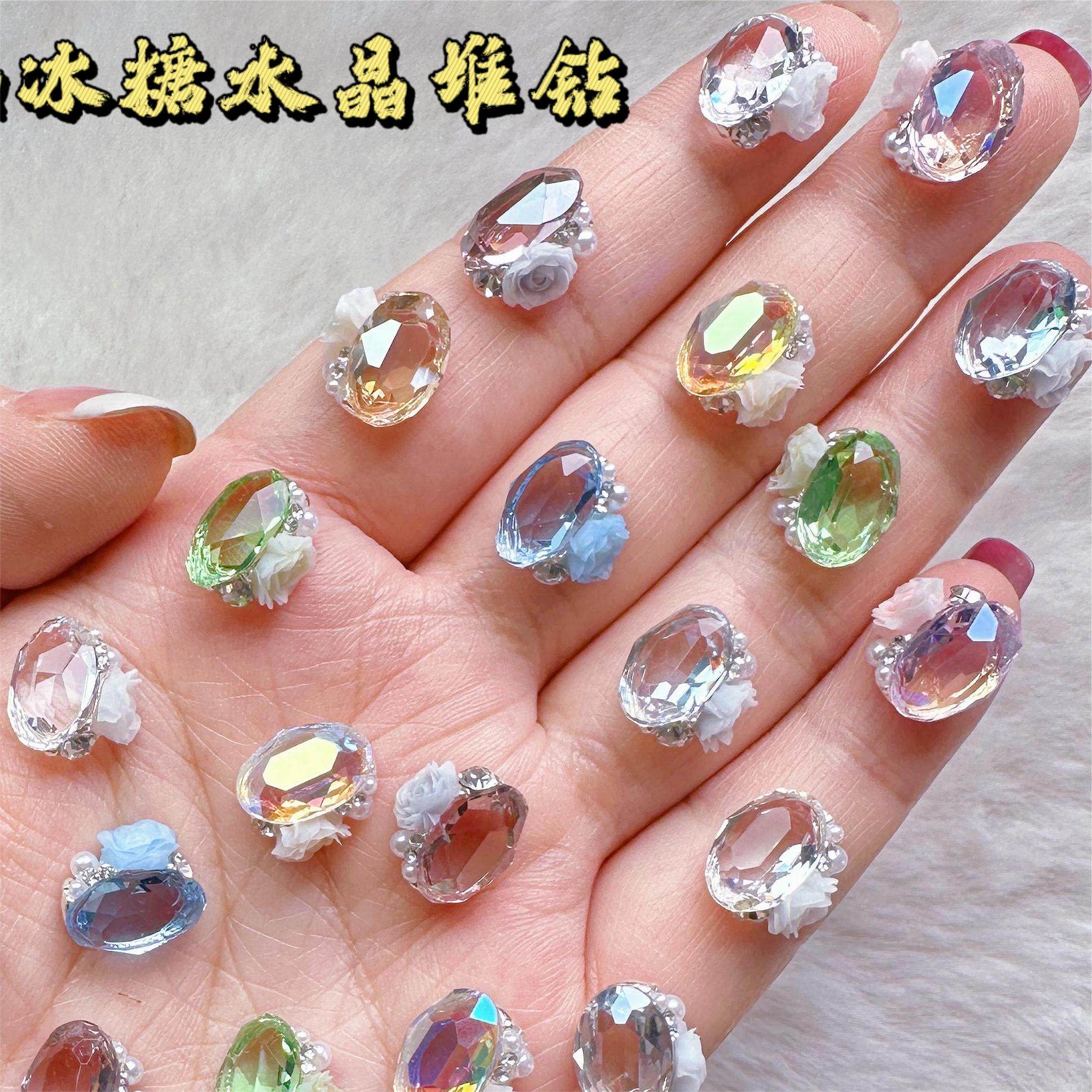 📚 高品K9透明水晶堆堆钻成品网红新款冰川透底鸽子蛋冰糖山茶花钻球