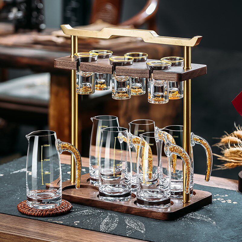 📚 金箔白酒杯分酒器收纳盒套装水晶玻璃金山家用小一口高档高端酒具