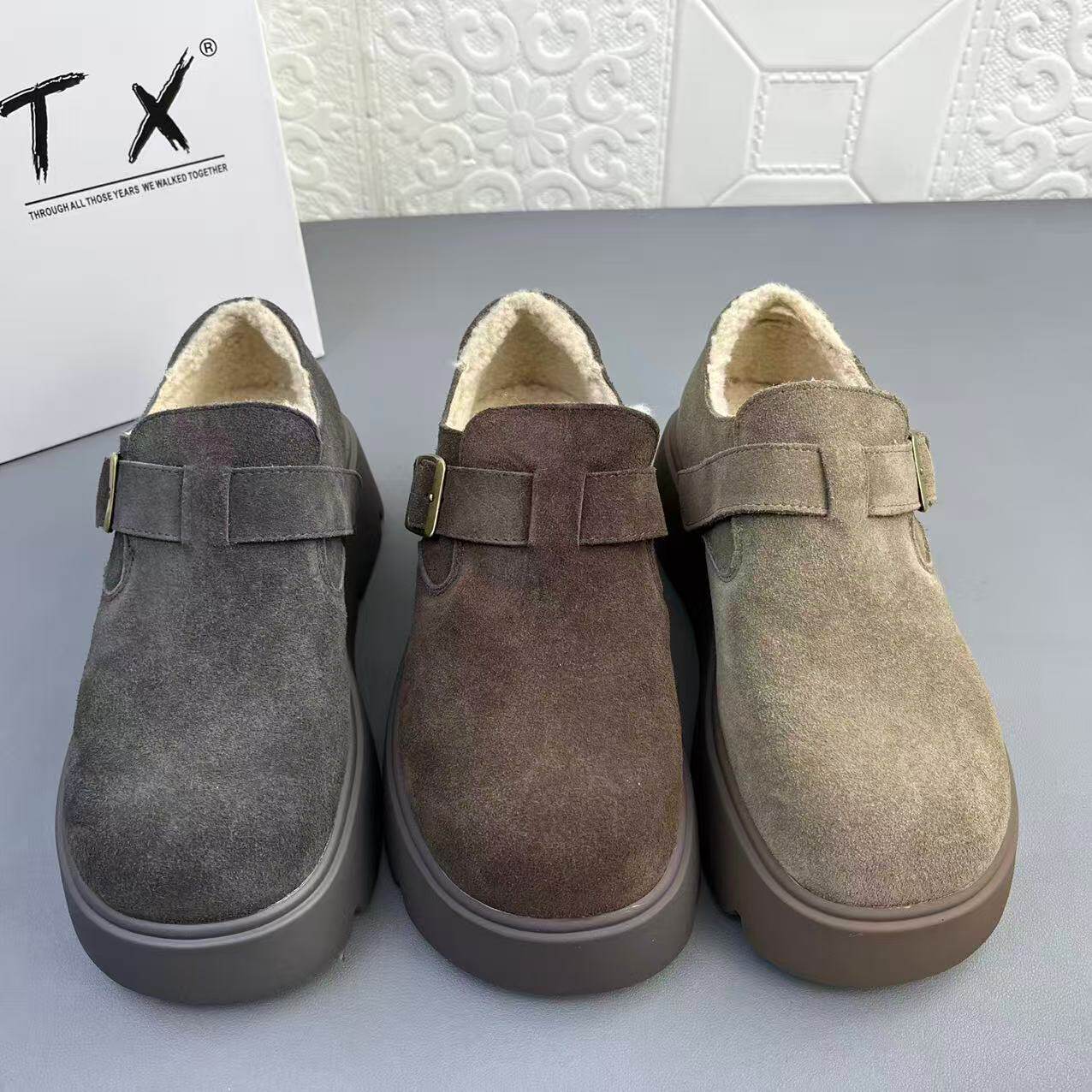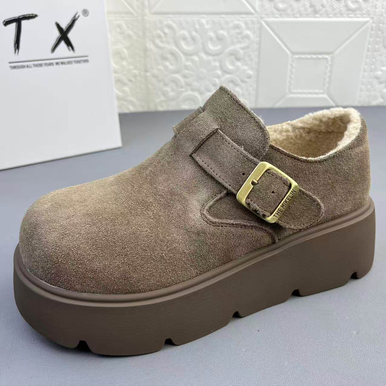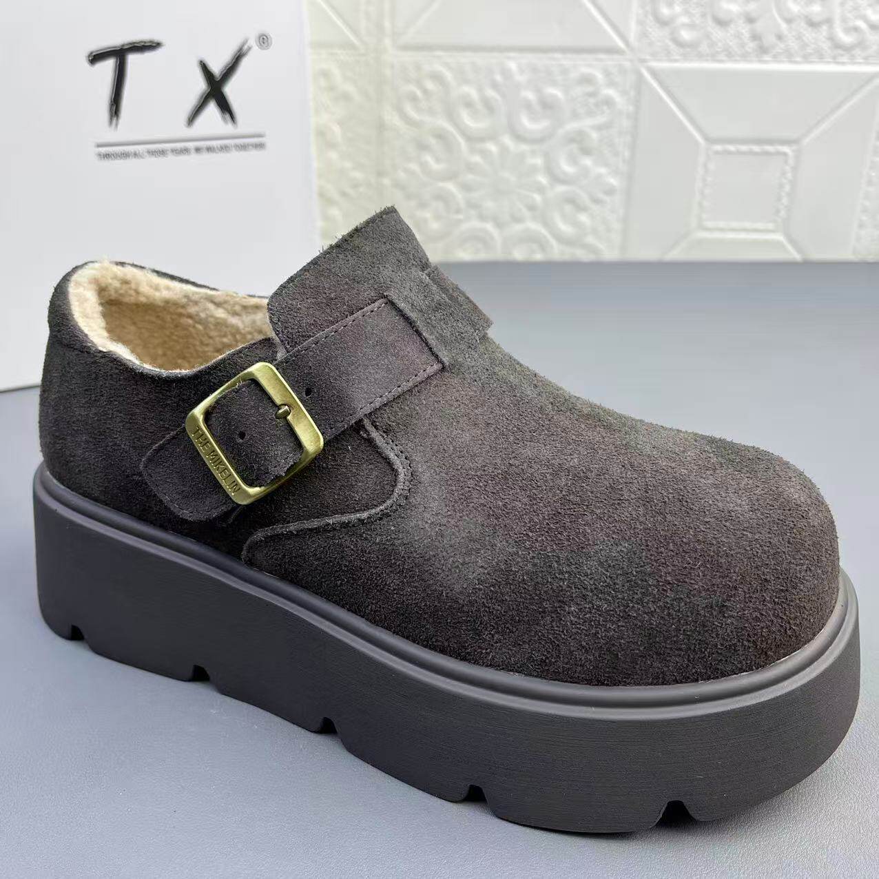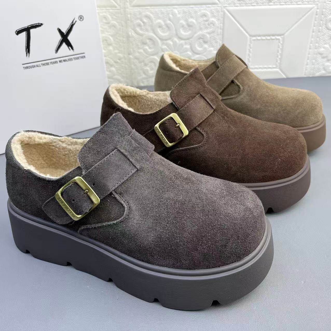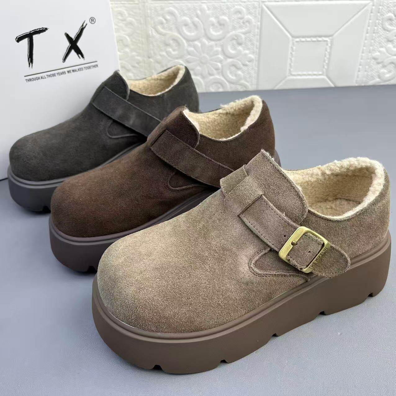 📚 奥莱撤柜处理时尚牛皮羊羔毛博肯女棉鞋真皮冬季新款保暖厚底单鞋