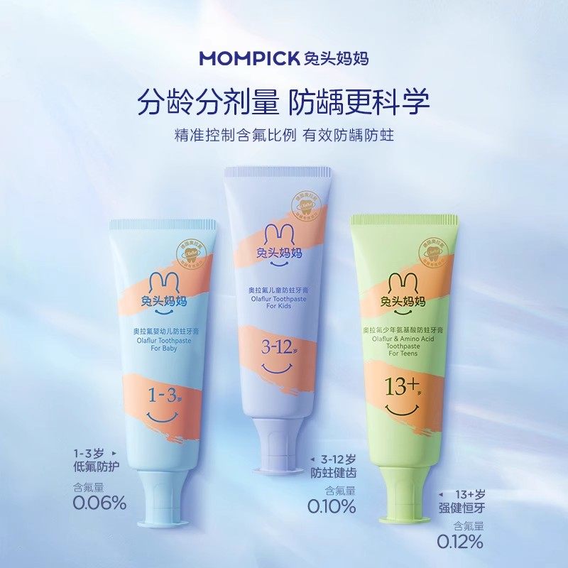 📚 兔头妈妈奥拉氟牙膏婴幼儿童含氟防蛀固齿换牙期防龋齿1-3-12岁