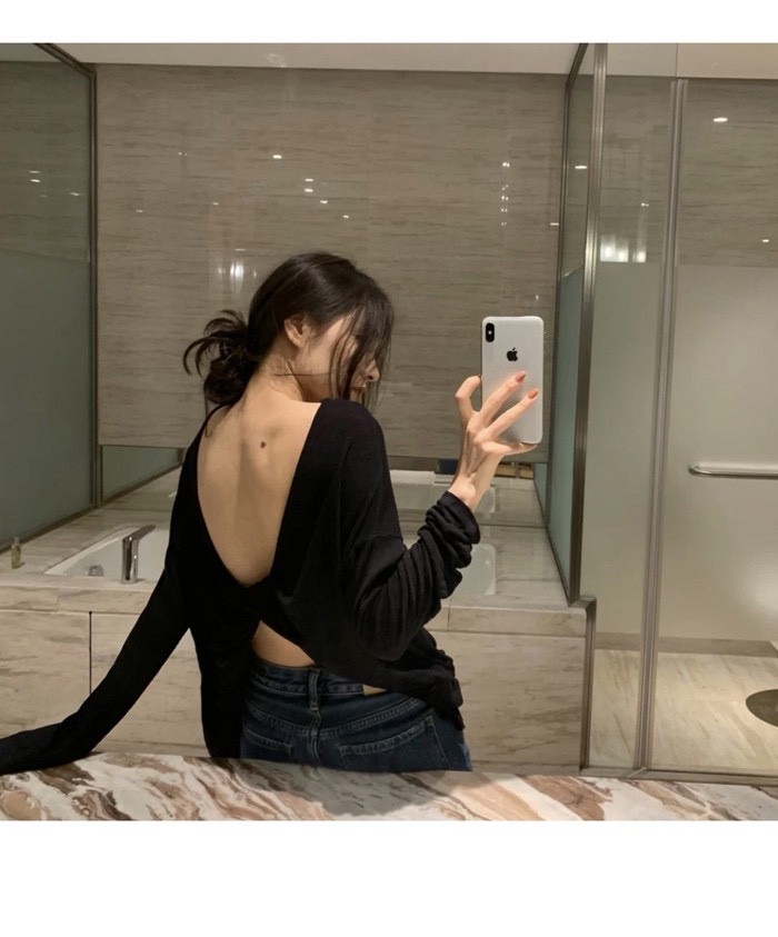 📚 设计感性感露背t恤女上衣长袖宽松时尚潮流夏季街头keepkapu靠谱