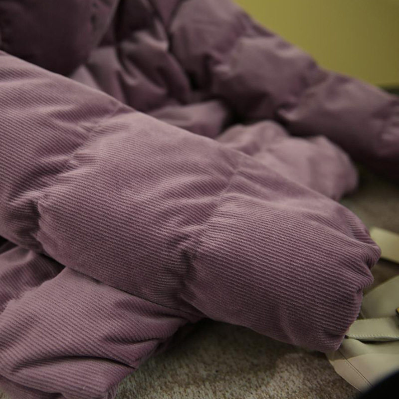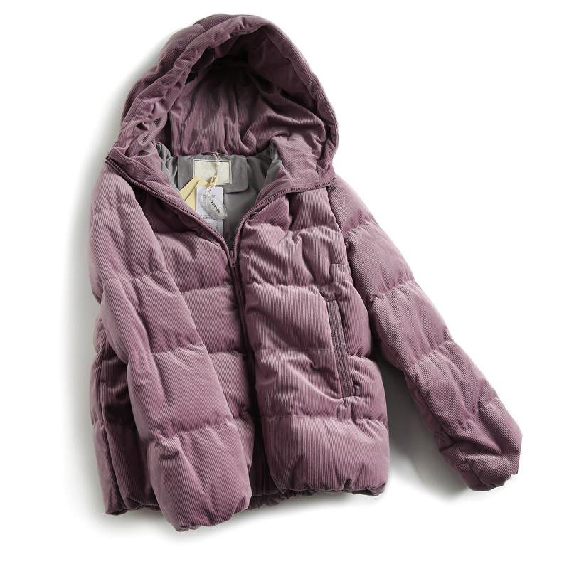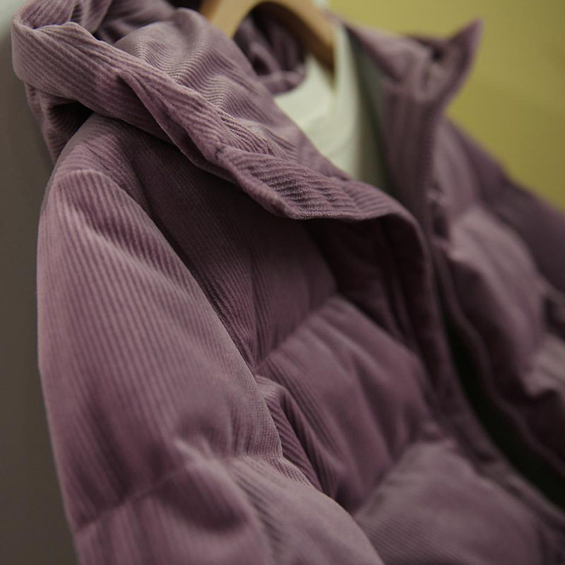 📚 紫色小香风连帽灯芯绒外套女冬季设计感小众轻奢加厚白鸭绒