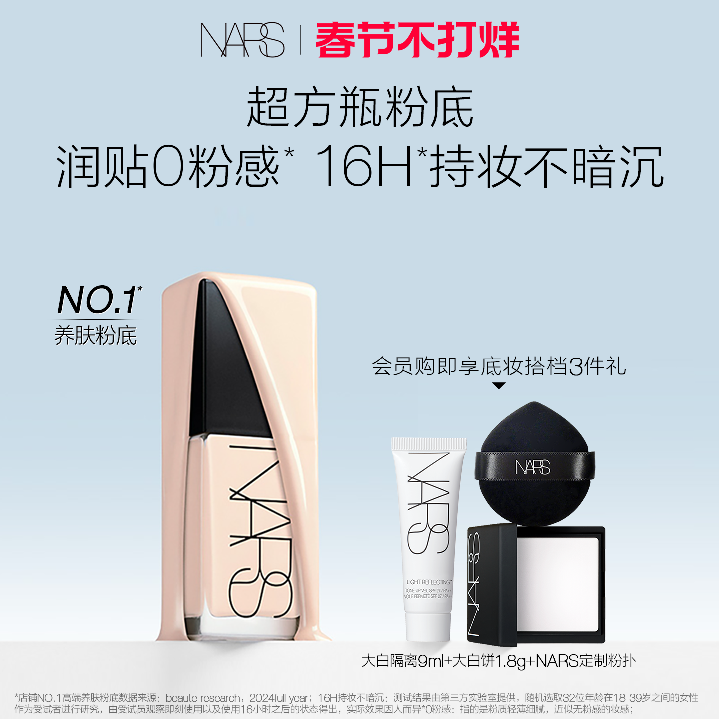 #NARS超方瓶粉底液 #年货节礼遇 #轻薄润贴持妆不卡粉 #混干皮福利