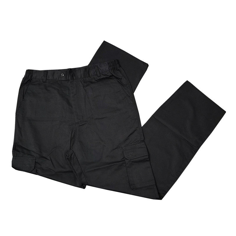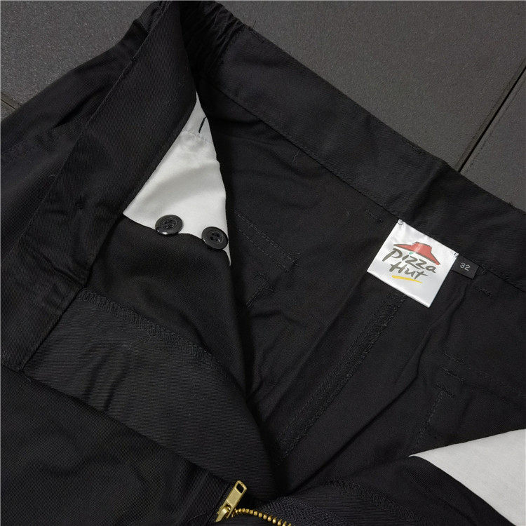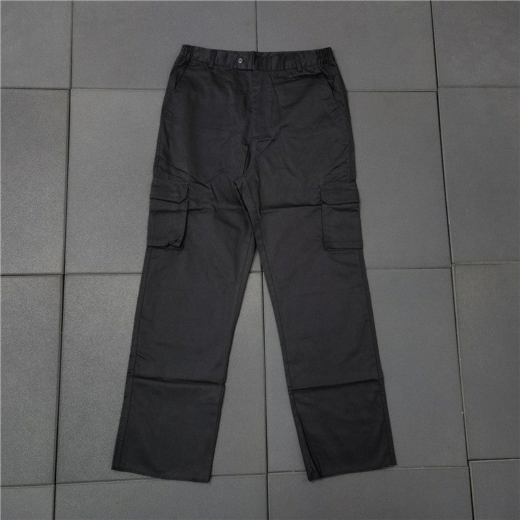 📚 美式披萨客春夏涤棉工装多口袋松紧腰制式纯黑色直筒工作长裤K826