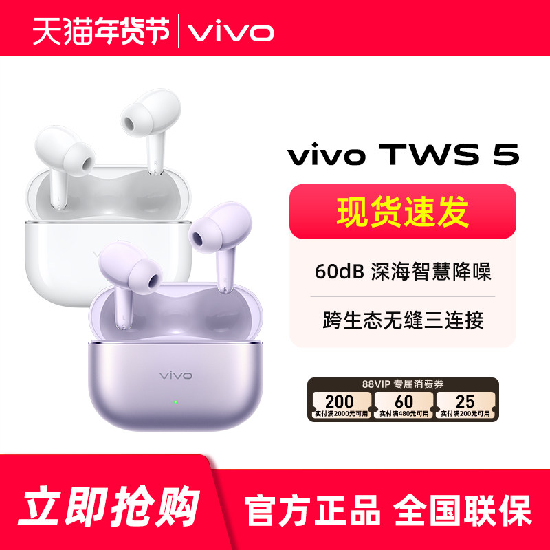 📚 vivo TWS5 真无线蓝牙降噪耳机音乐学生耳机