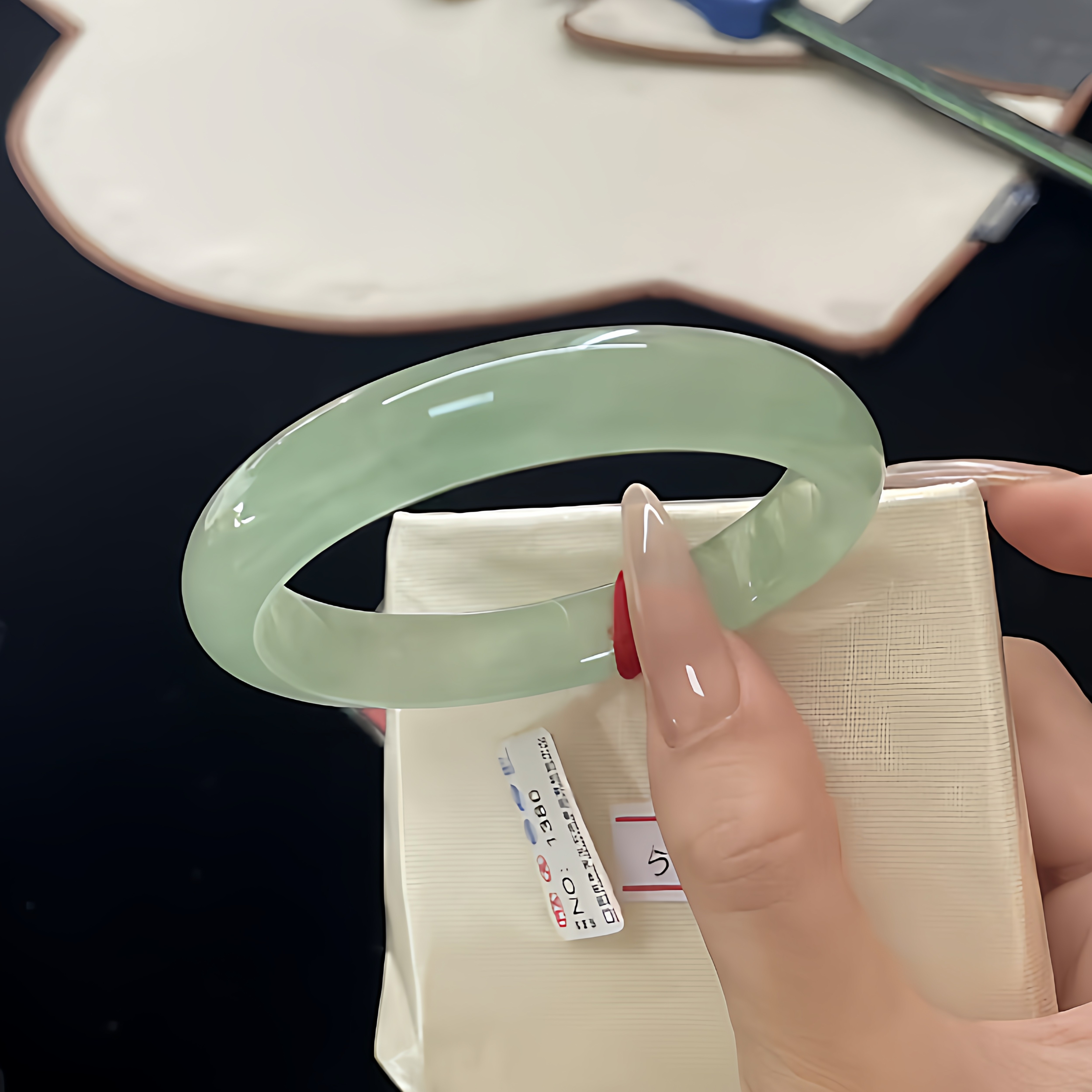 📚 玉长情【丹青系列】翡翠玉手镯子冰种贵妃镯油青飘花正品玉石处理