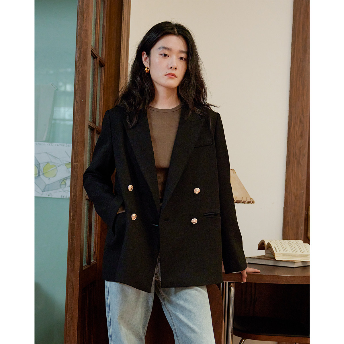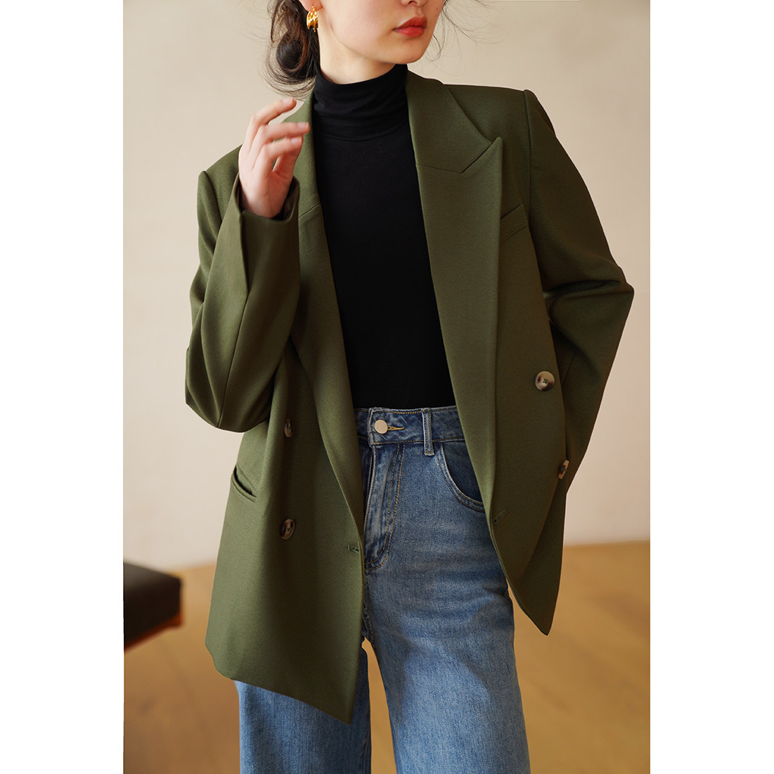 📚 徐莫西 复古风暗绿色宽松西装外套女秋季设计感小众休闲西服职业