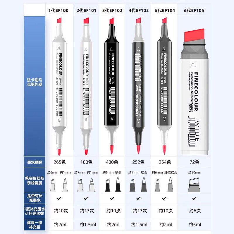 📚 法卡勒马克笔补充液240-479号单支自选色EF900一代二代三代四代五代六代墨水补充液法克勒填充液20ML正品通用