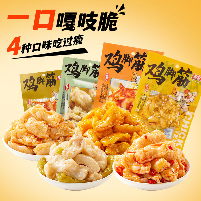 📚 【小拉泽专属】有友 山椒鸡脚筋盐焗泡椒鸡爪筋无骨追剧解馋零食