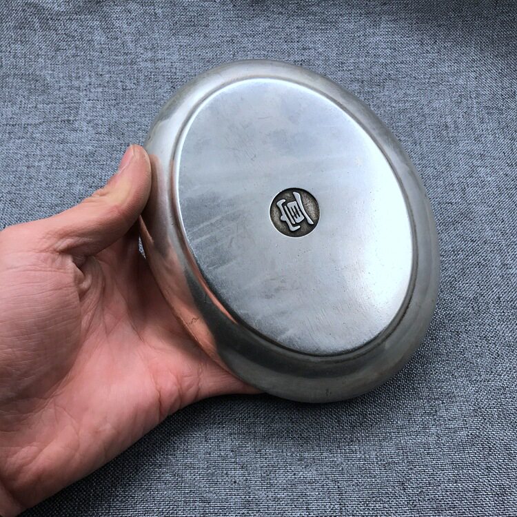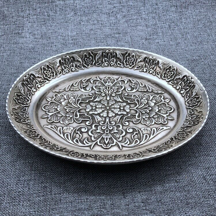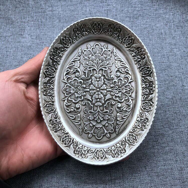 📚 仿古白铜镀银龙凤碟子笔洗盘子银碗套装宣字底款复古雕花椭圆摆件