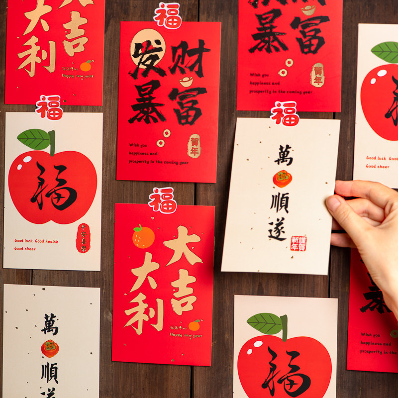 📚 新年马年祝福贺卡烘焙礼盒包装盒小卡片包装袋伴手礼品盒创意装饰