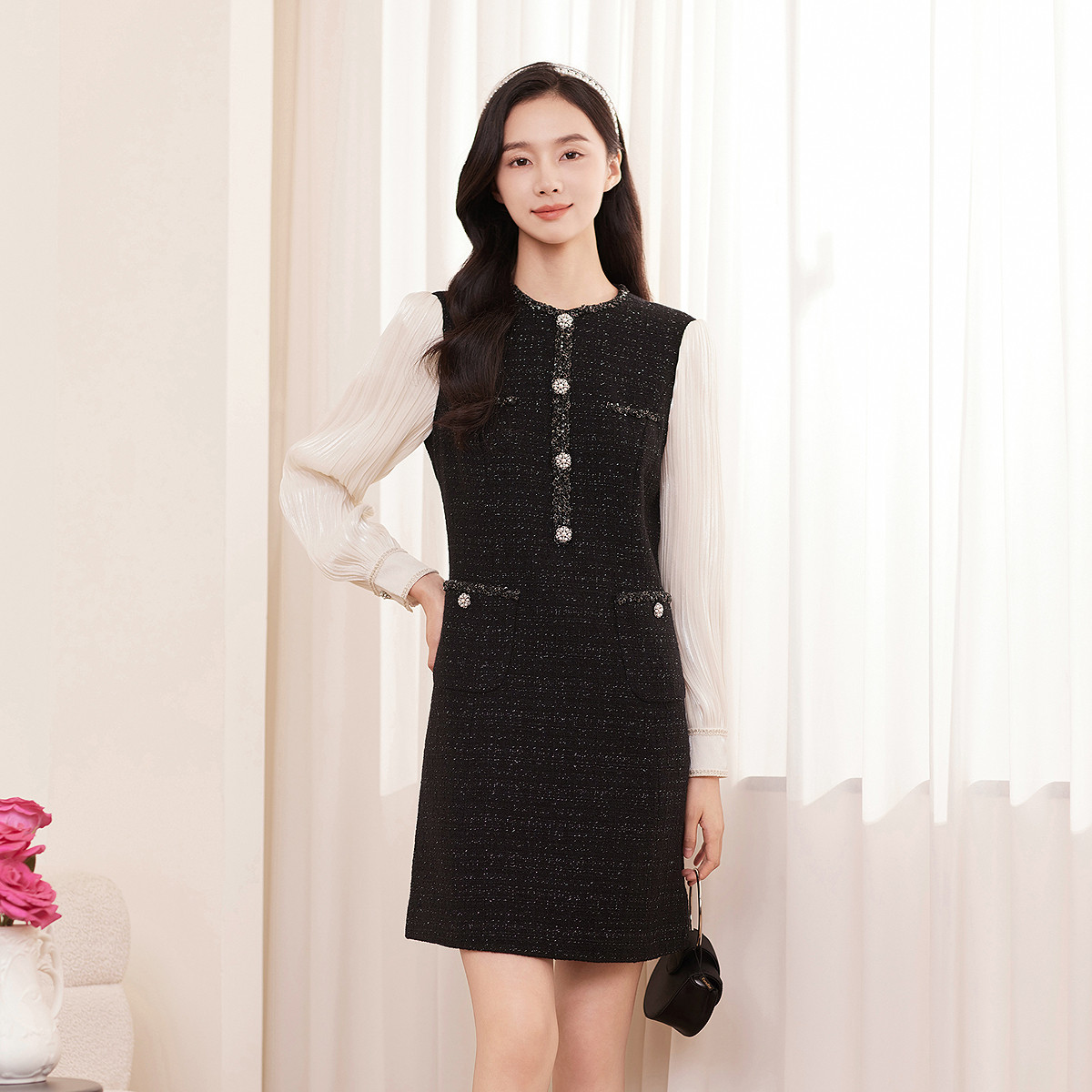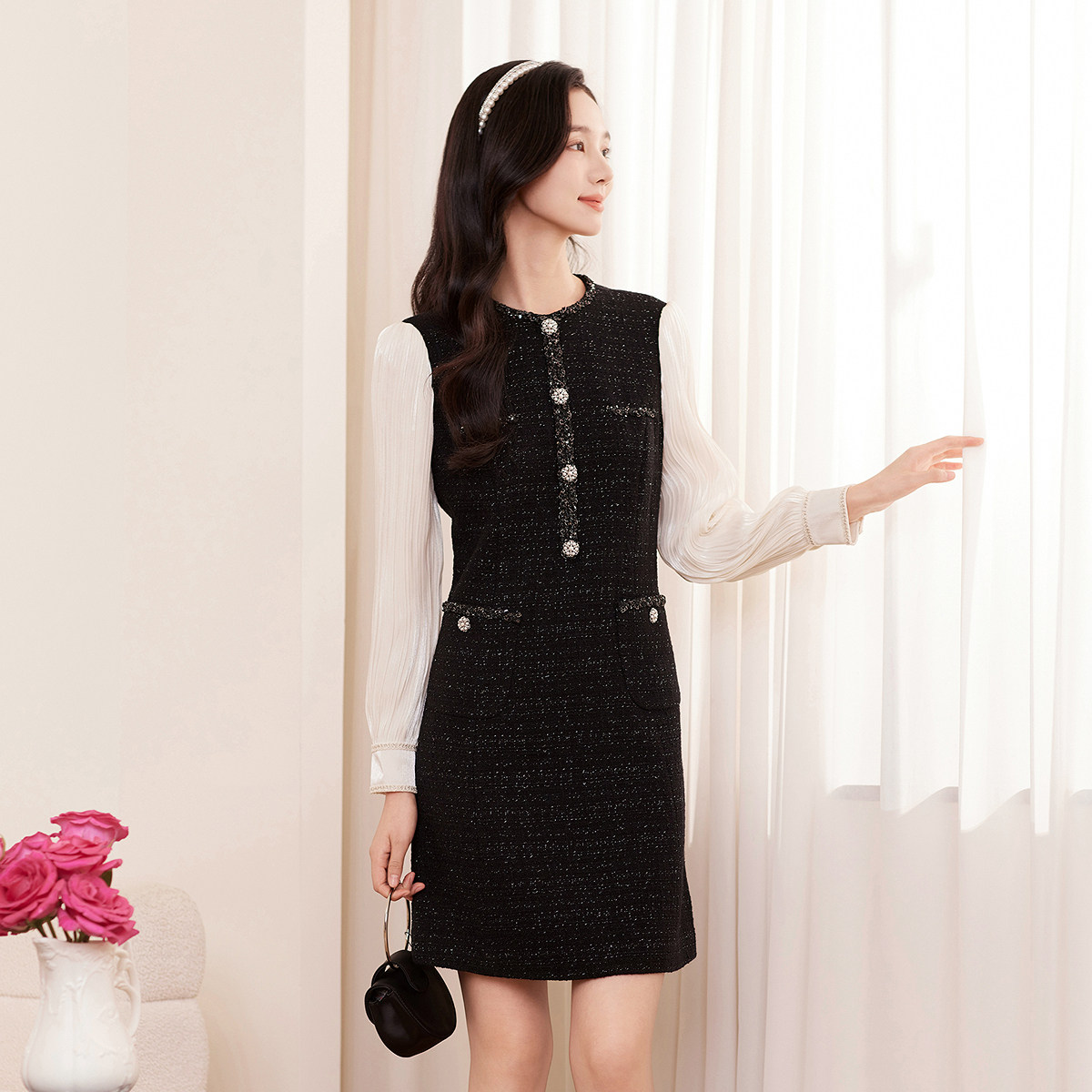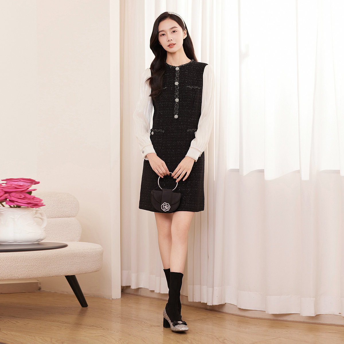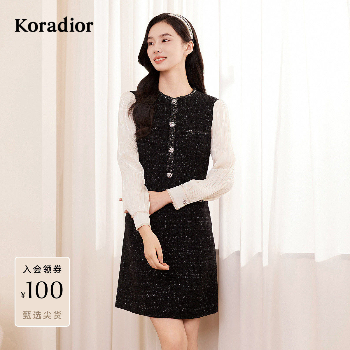 💥惊艳!冬日新宠:Koradior珂莱蒂尔香风粗花呢拼接连衣裙🍁