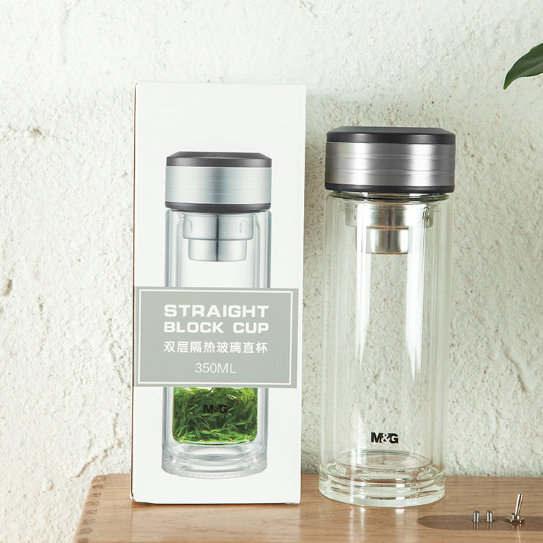 📚 晨光350mL双层玻璃杯喝水杯隔热男女杯透明带盖高颜值茶杯子