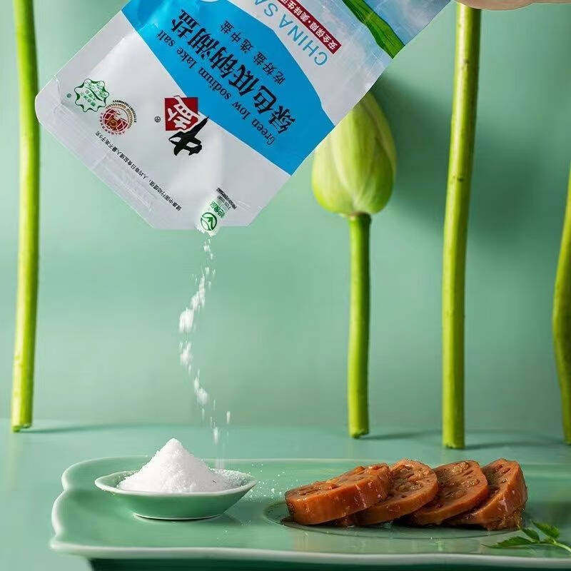 📚 中盐低钠湖盐无碘绿色食品认证盐零抗结剂零添加剂未加碘食用钾盐