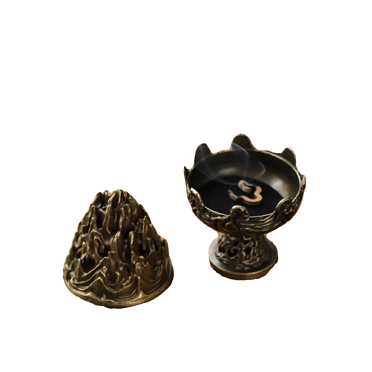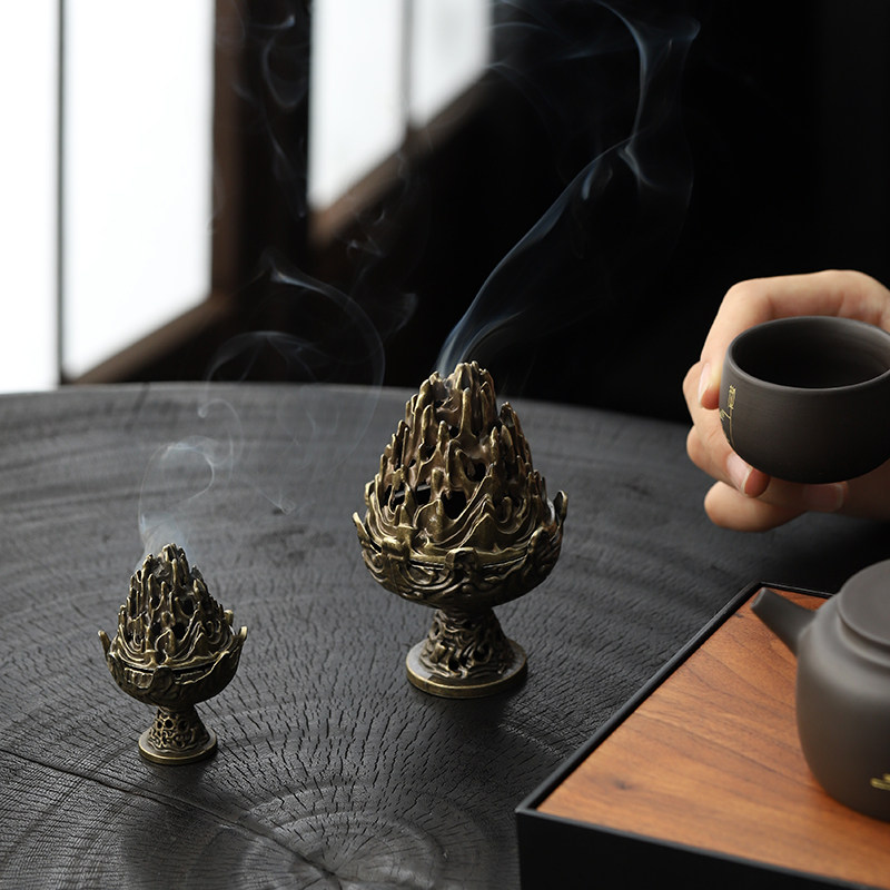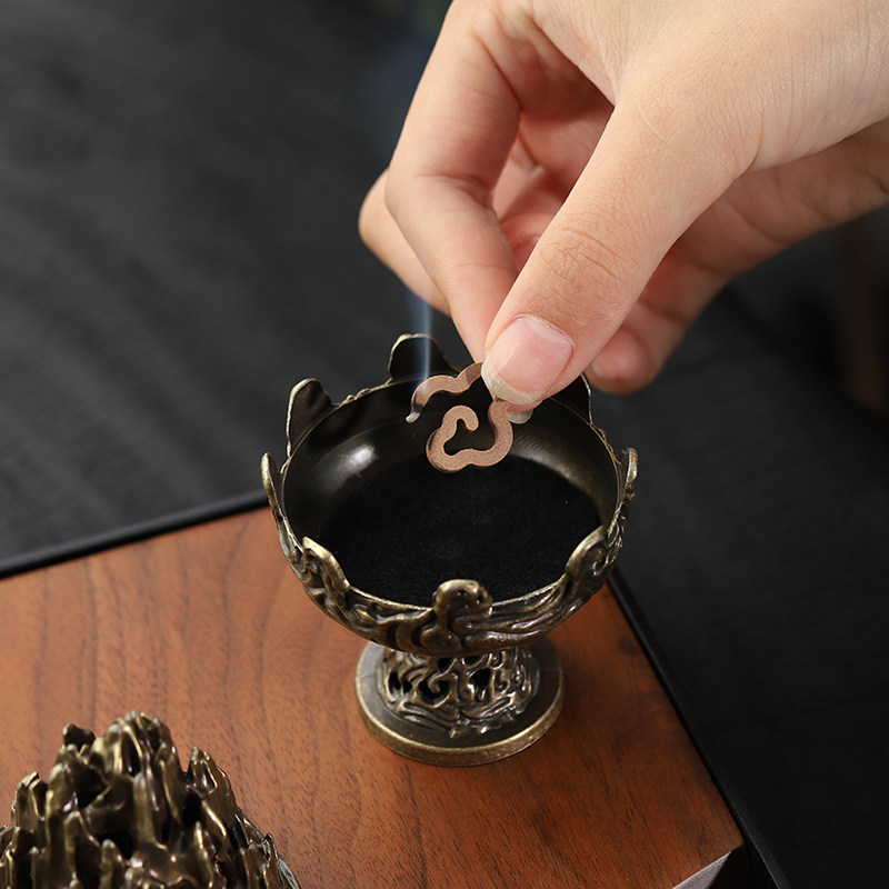 📚 合金博山炉小号创意复古香炉祥云无粘粉盘香炉家用室内香薰檀香炉