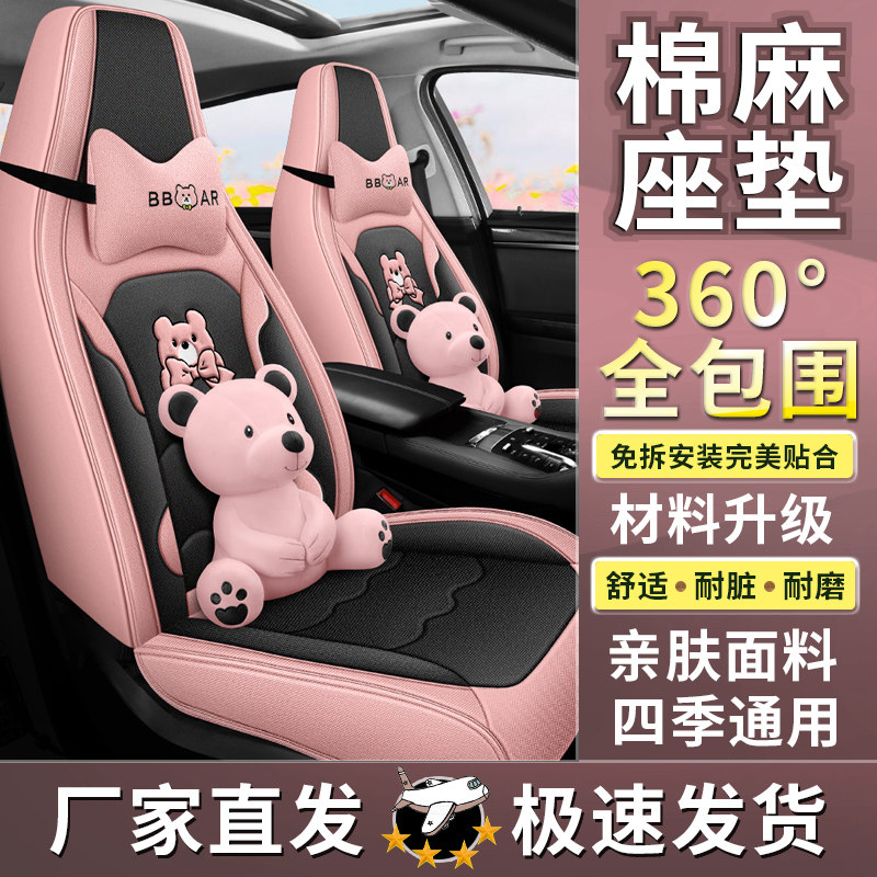 📚 猎豹CS9新款四季通用全包围座椅套卡通皮质高档亚麻防脏汽车坐垫5
