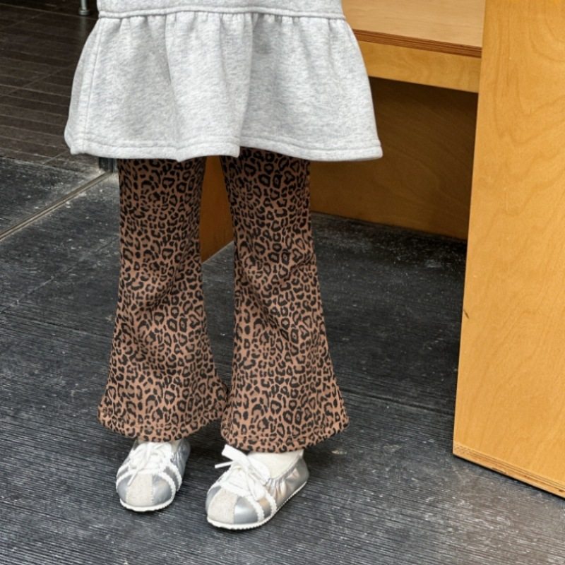💥2025冬装新款女童一体绒豹纹喇叭裤!韩风加绒加厚,券后价38.3!💖