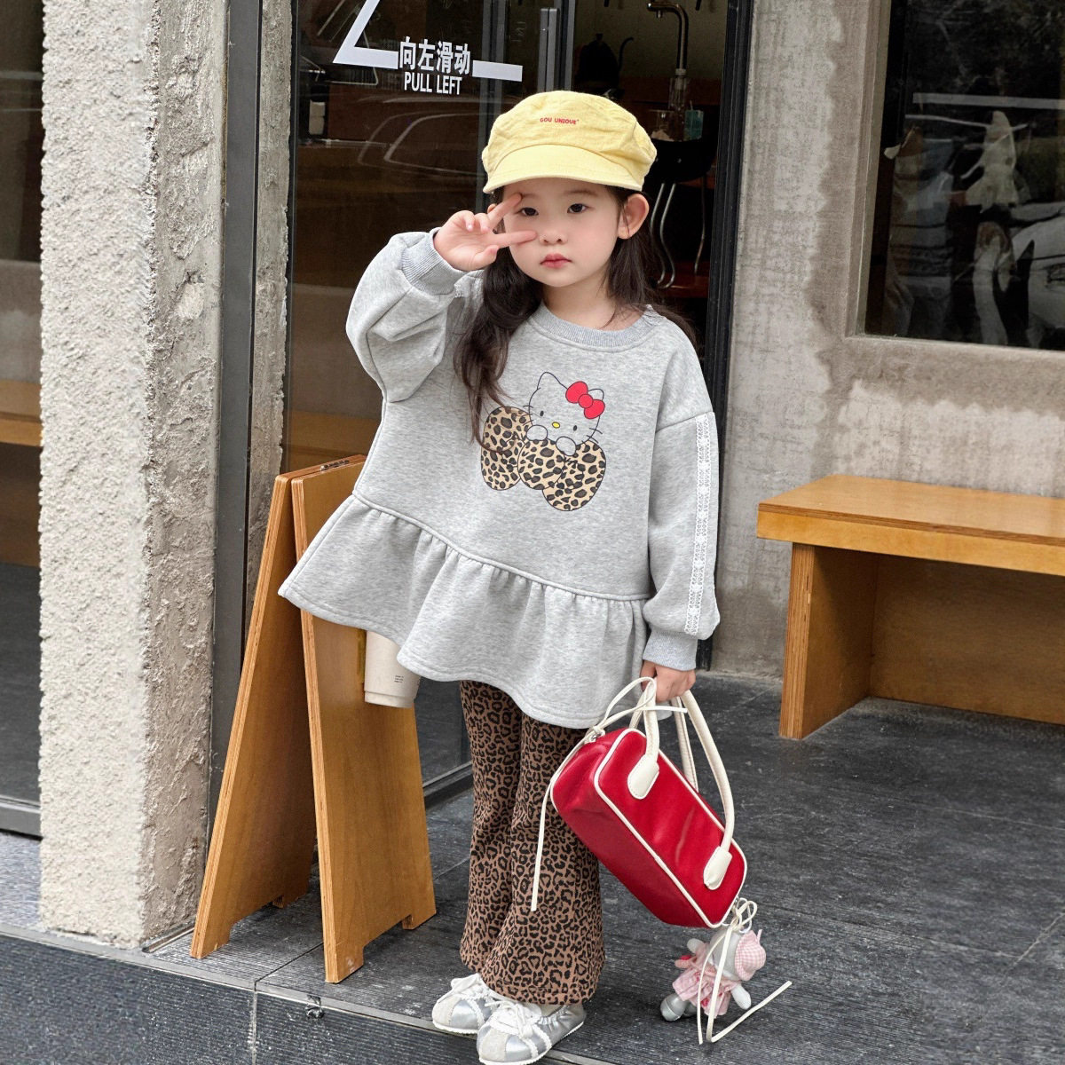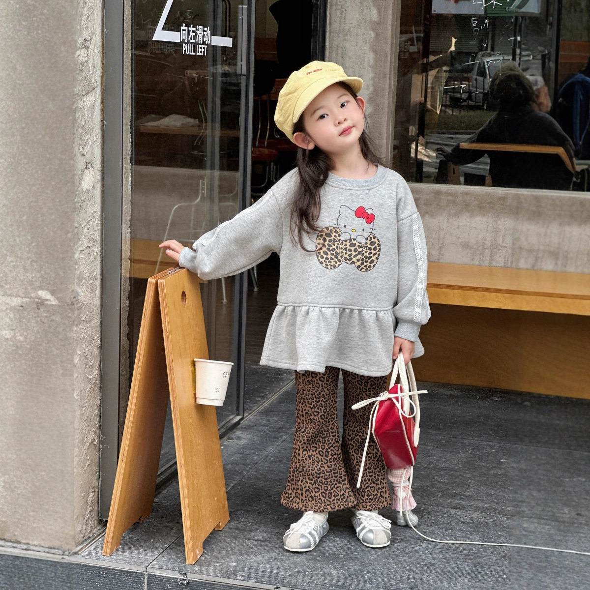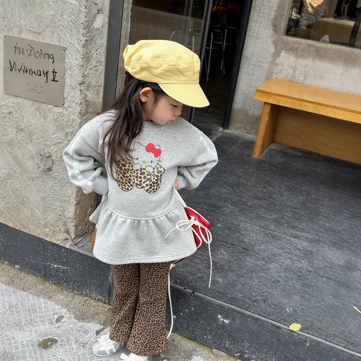 🔥最让人惊艳的是它的豹纹设计,时尚而不失个性,绝对是潮童们的不二之选。喇叭裤的版型更是灵动飘逸,穿起来既舒适又显腿长。