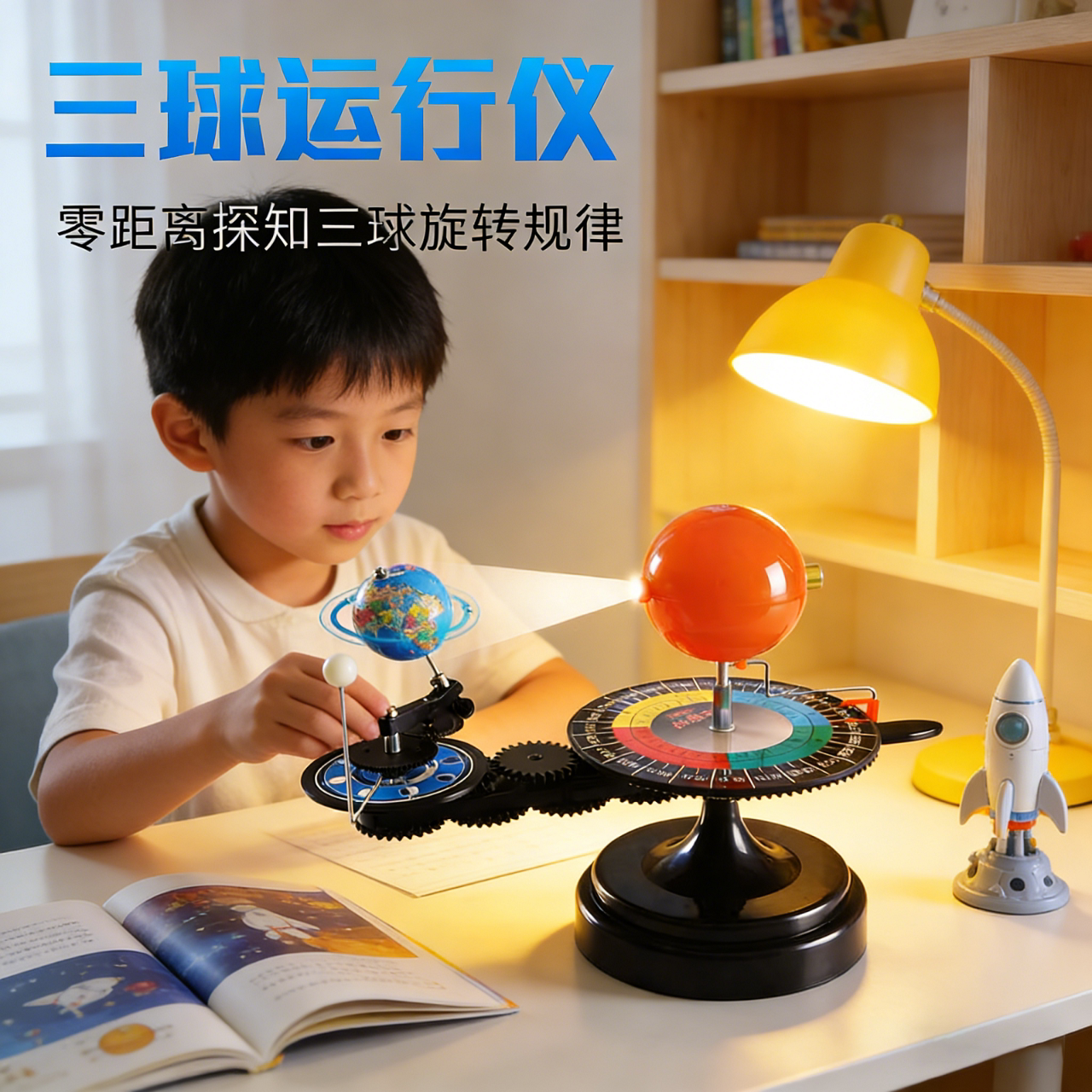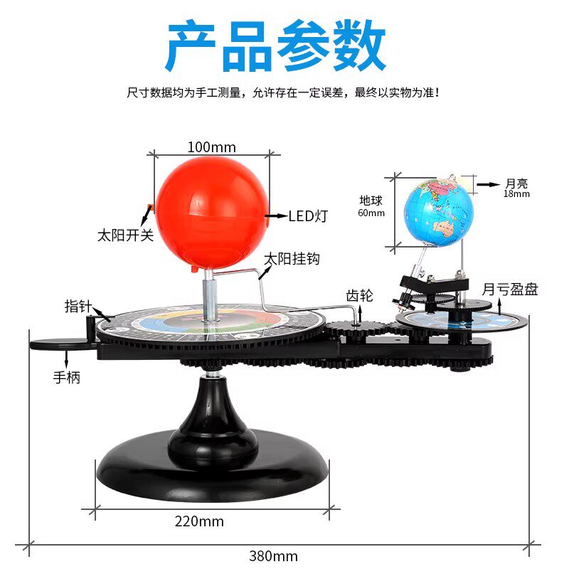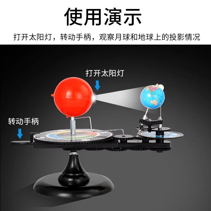 📚 太阳地球月亮三球仪公转自转模型天体运行教具月相盒八大行星天球仪地理教学演示仪器电动高中转动构造地图