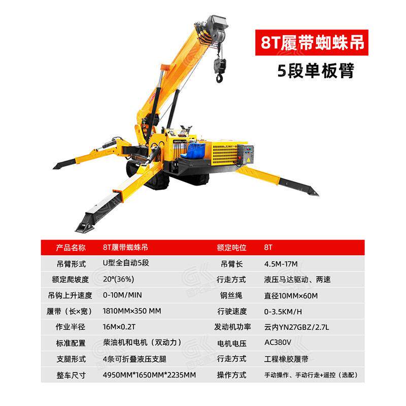 📚 8吨蜘蛛吊可折叠支腿履带行走小吊机油电两用遥控器控制小空间吊