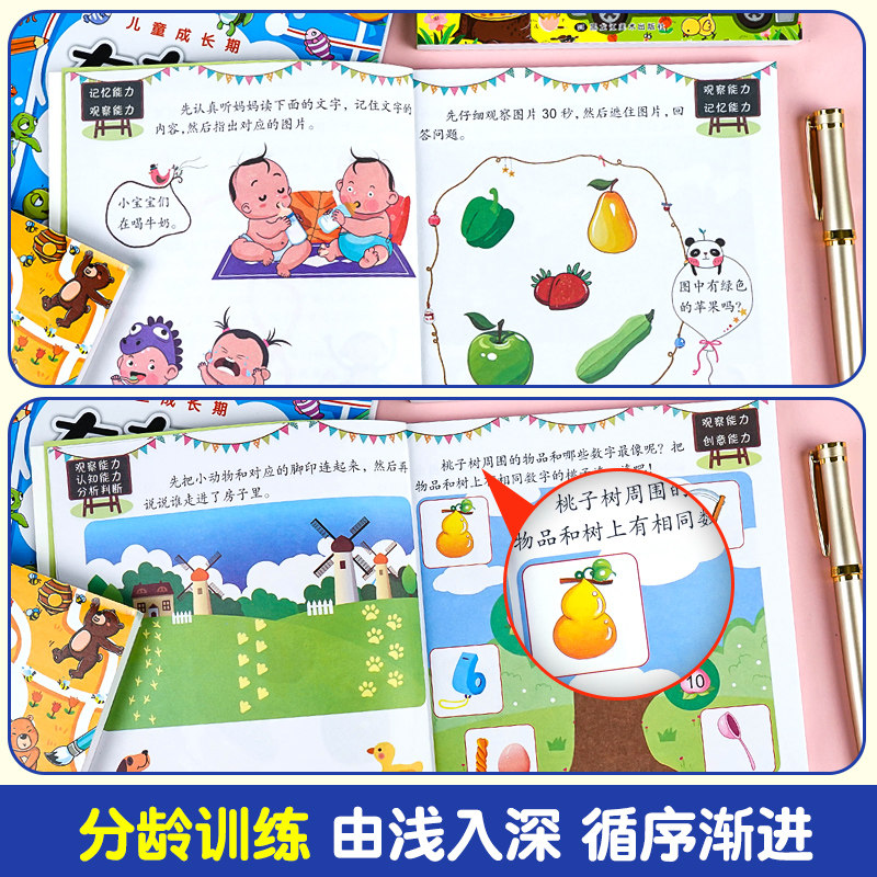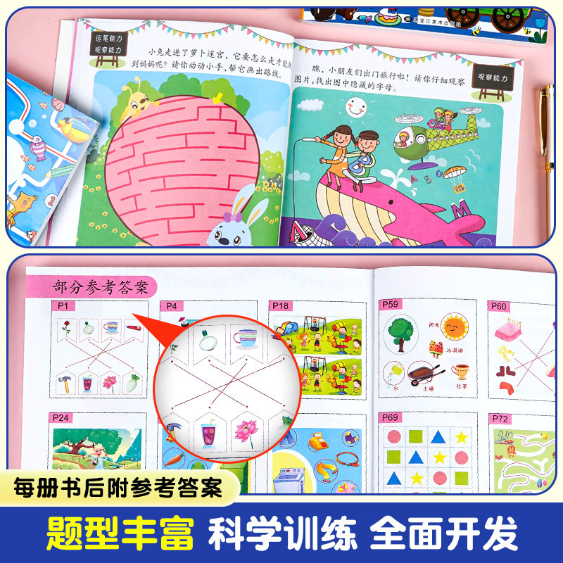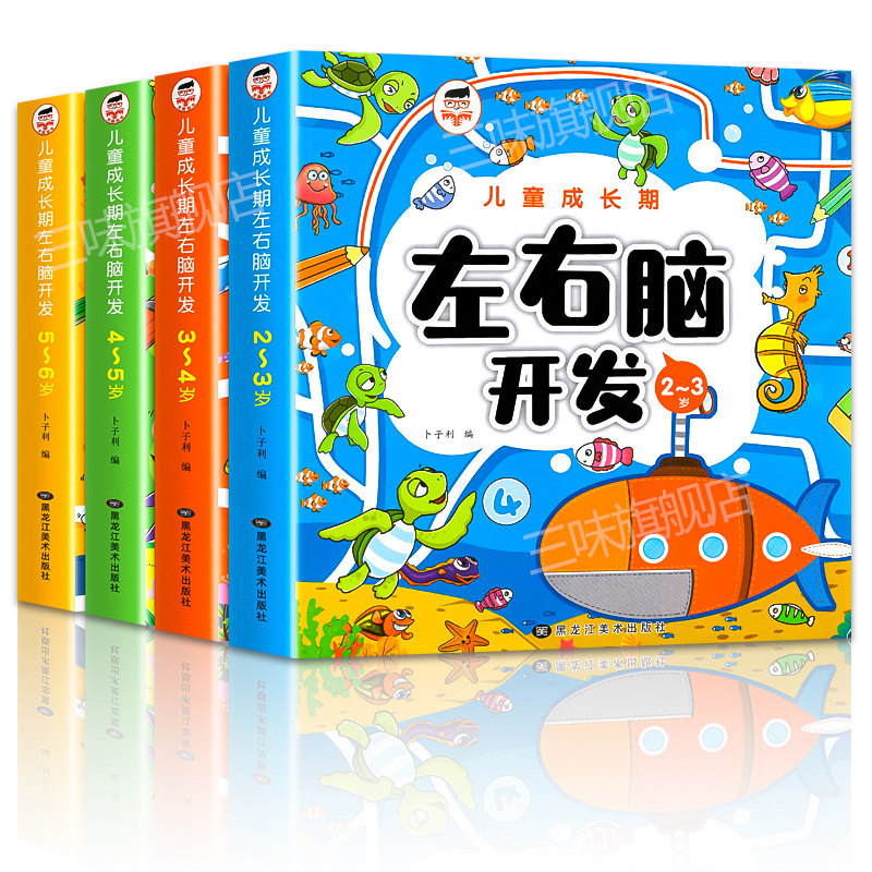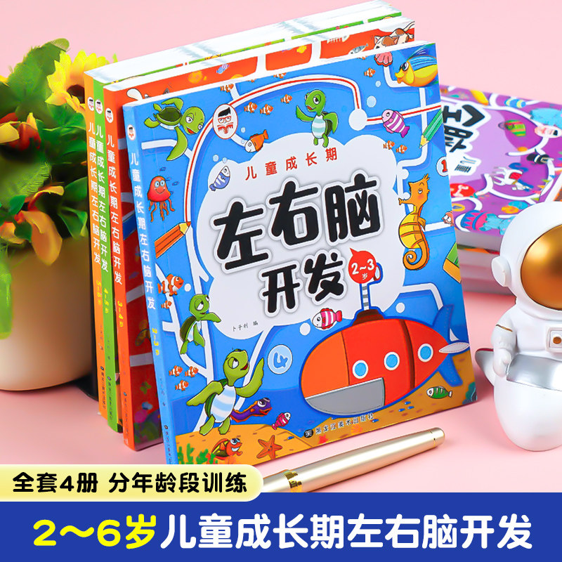 📚 全套4册 左右脑开发思维训练2-3-4-5-6岁 幼儿全脑开发大脑智力左右脑专注力训练数学逻辑提升幼儿园小班中班大班益智书籍1000题