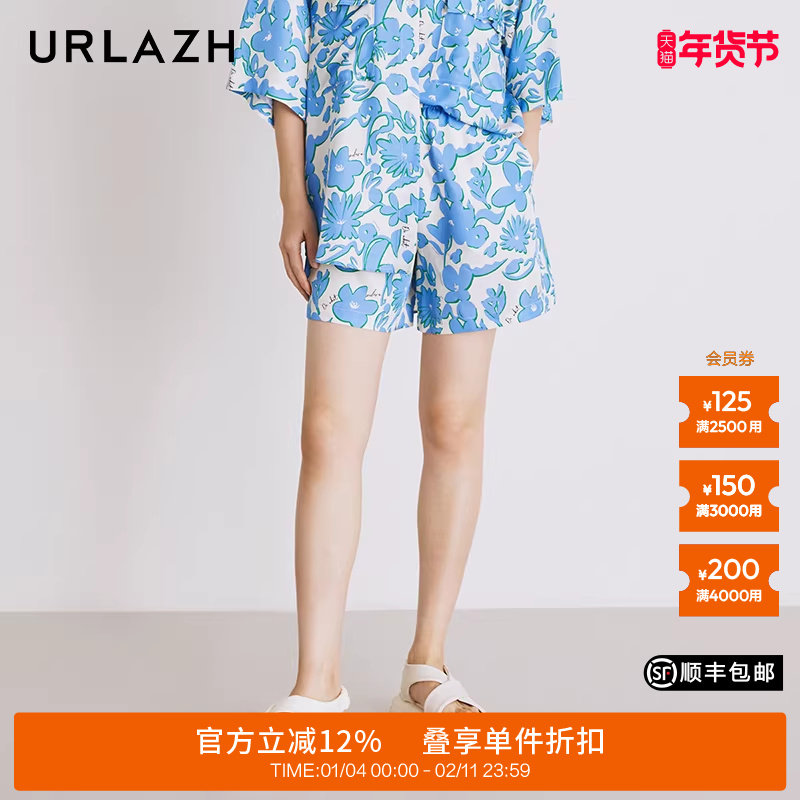 📚 URLAZH有兰夏季新款复古宽松直筒时尚印花蓝色海边度假休闲短裤女