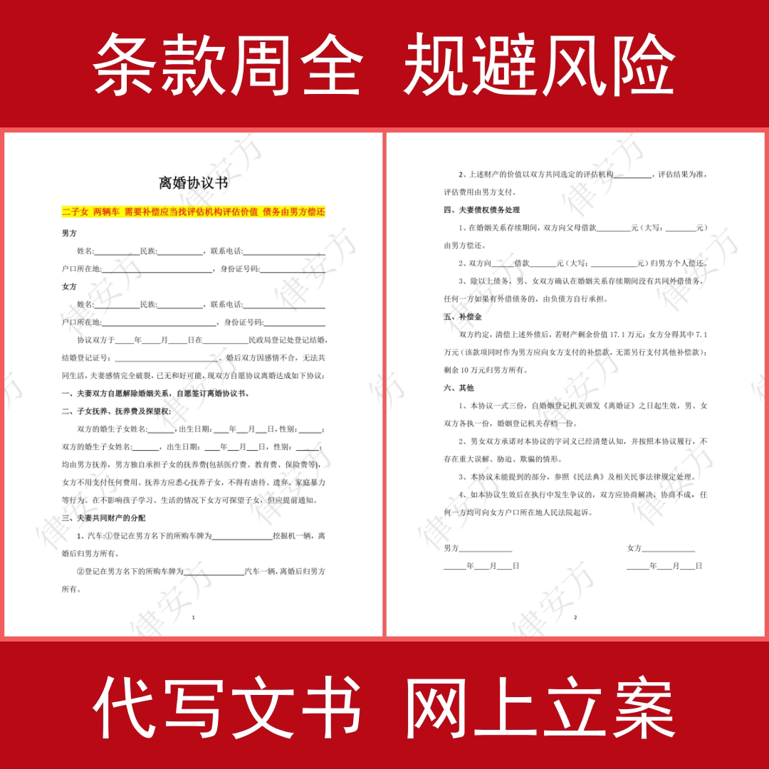 📚 离婚律师咨询起草离婚协议书起诉状网上立案婚内财产协议代写文书