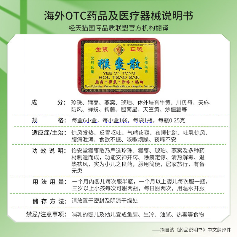 📚 香港怡安堂猴枣散12粒除痰定惊清热解毒安神开窍退热祛风腹痛泄泻