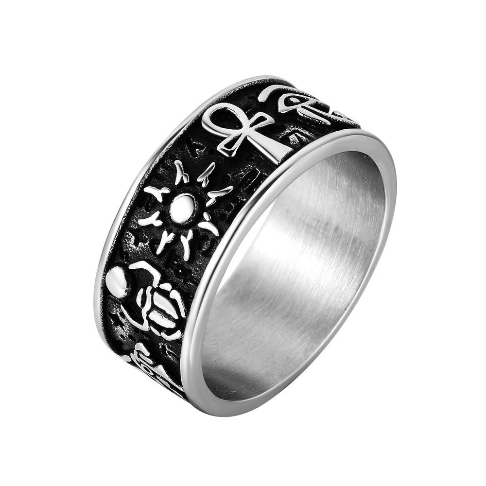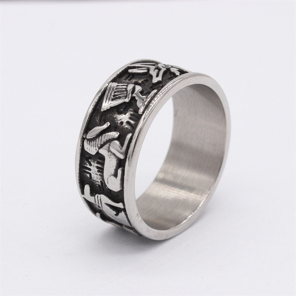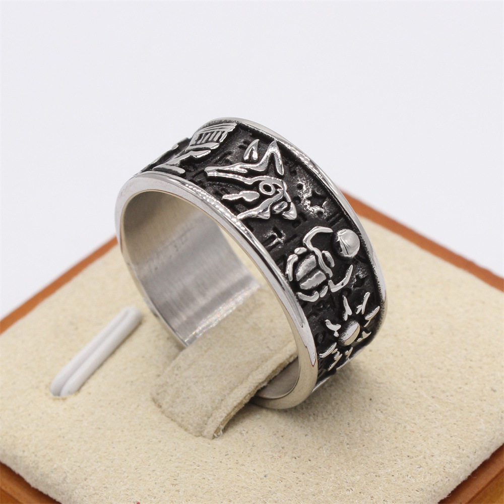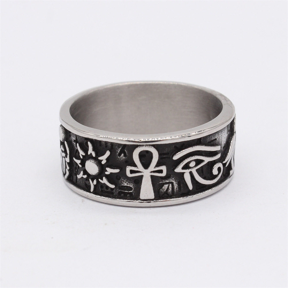 📚 时尚钛钢男款戒指欧美复古荷鲁斯之眼阿努比斯十字架钛钢戒指指环