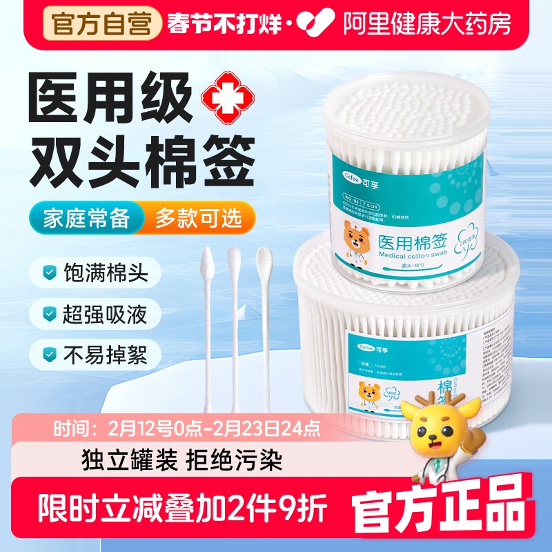 📚 可孚医用棉签消毒化妆掏耳朵婴儿医疗无菌家用尖圆双头棉棒一次性