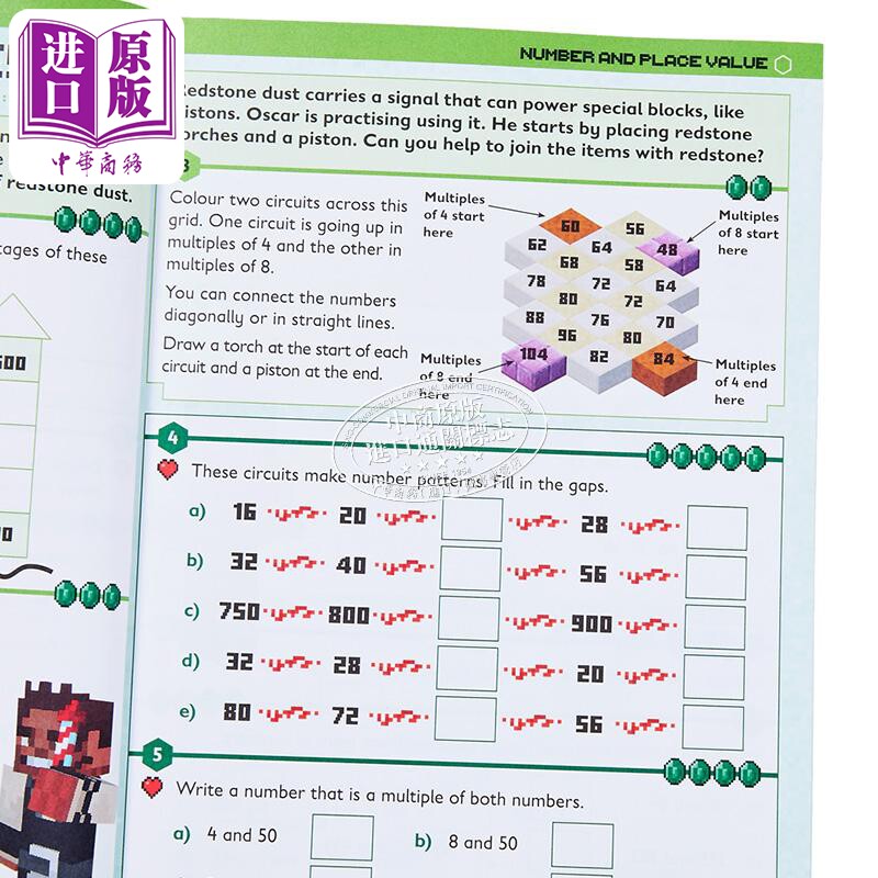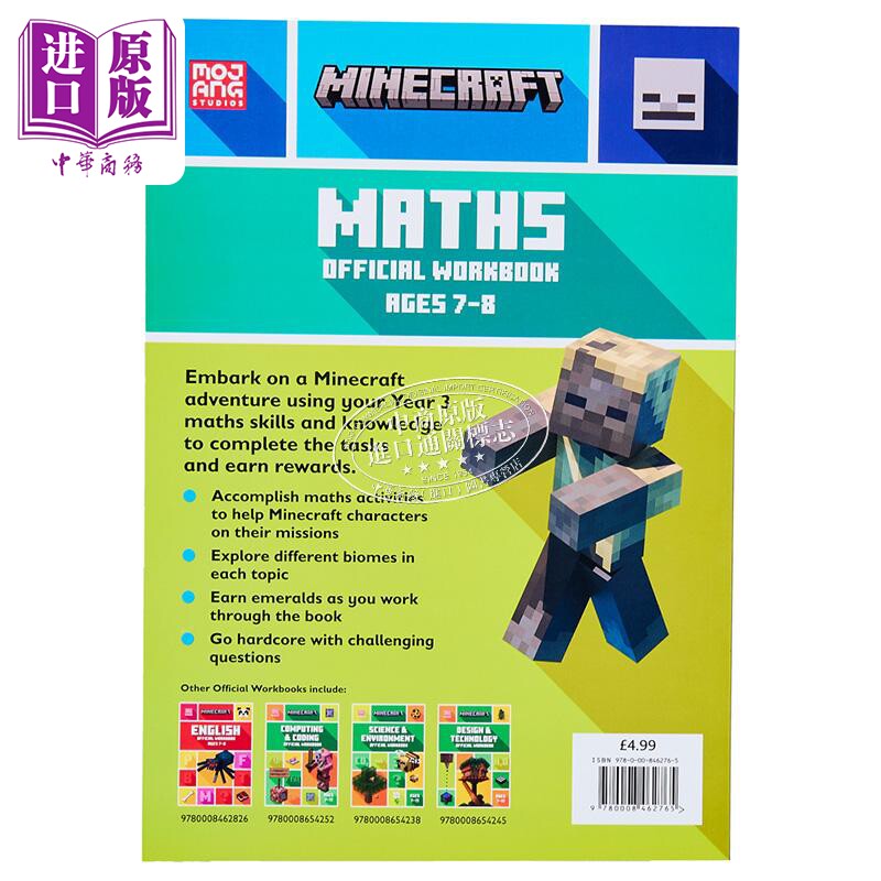 📚 Minecraft Maths Ages 7-8: Official Workbook 我的世界官方数学练习册7-8岁 英文原版进口英语原版小学教辅图书【中商原版?