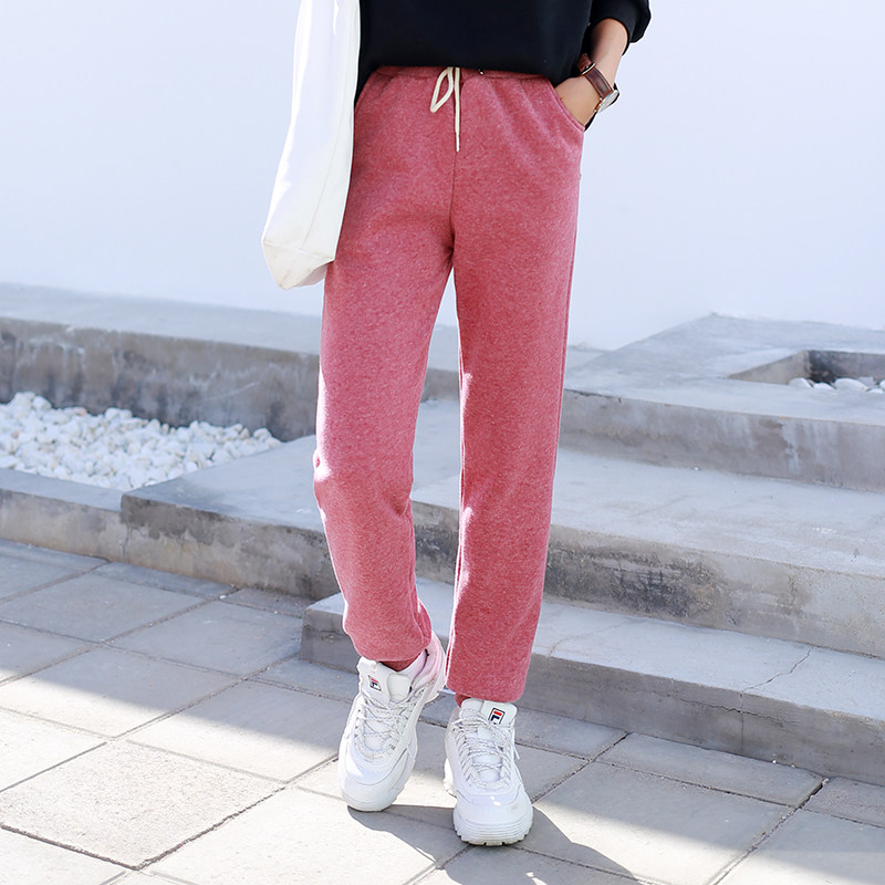 📚 秋冬新品外穿加绒运动裤女宽松加厚抓绒卫裤韩版休闲收口直筒长裤