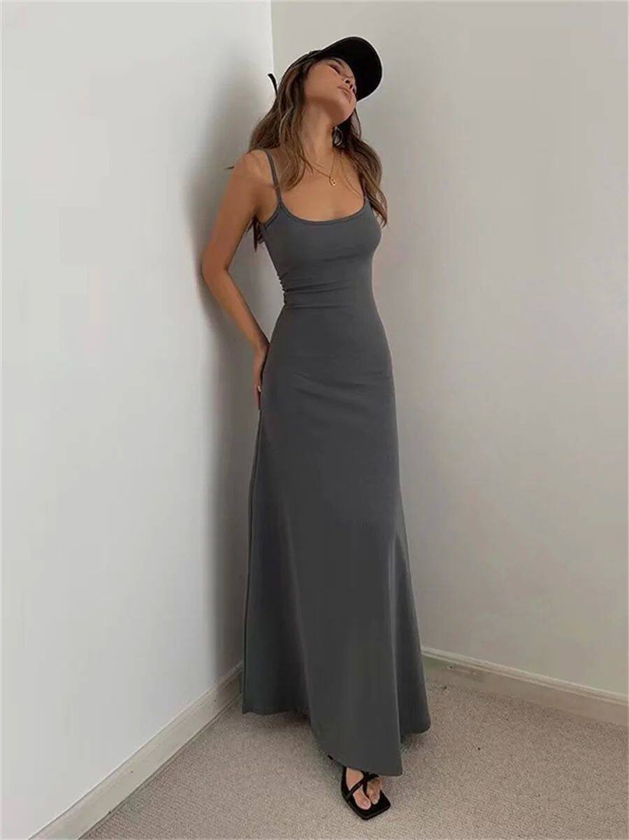 📚 Waist up open back camisole dress 纯色套头收腰露背吊带连衣裙