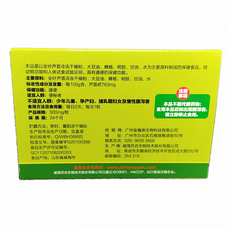 📚 多莱康百合康牌芦荟软胶囊买一盒送一小盒