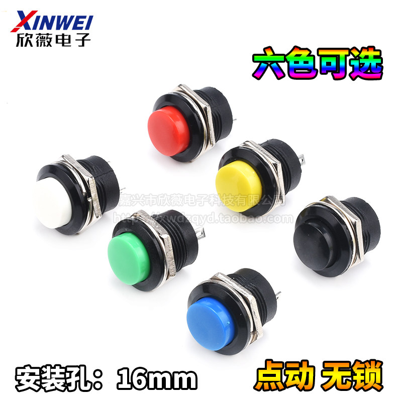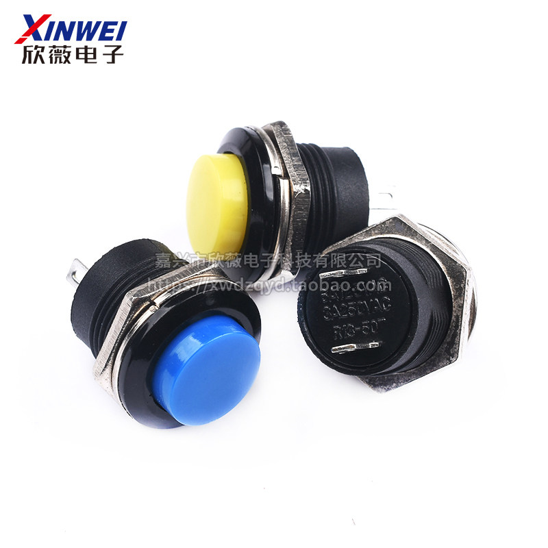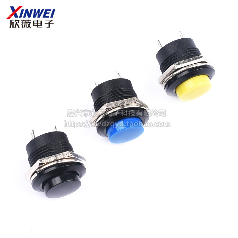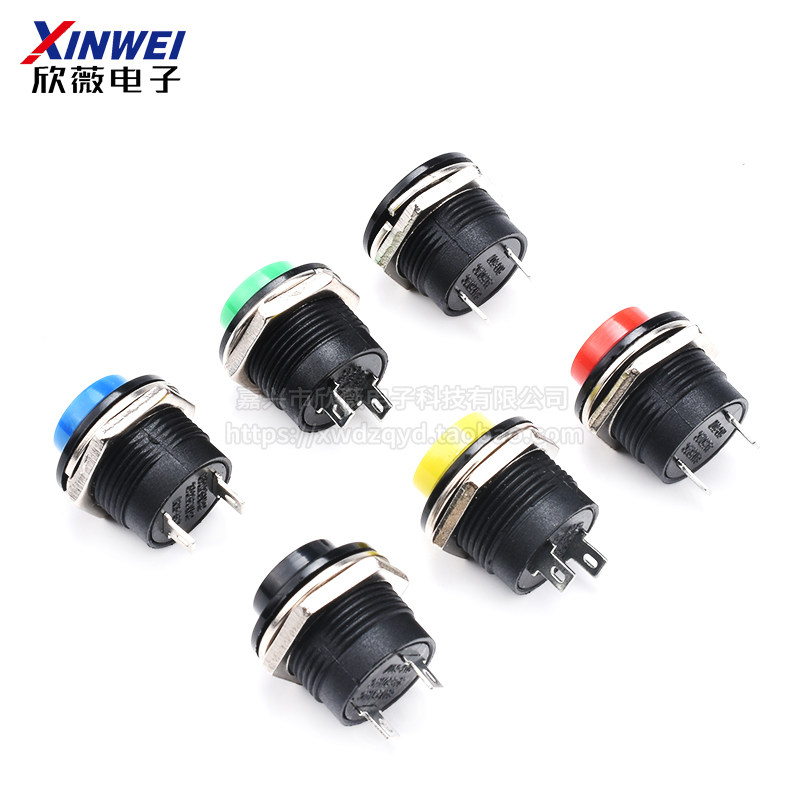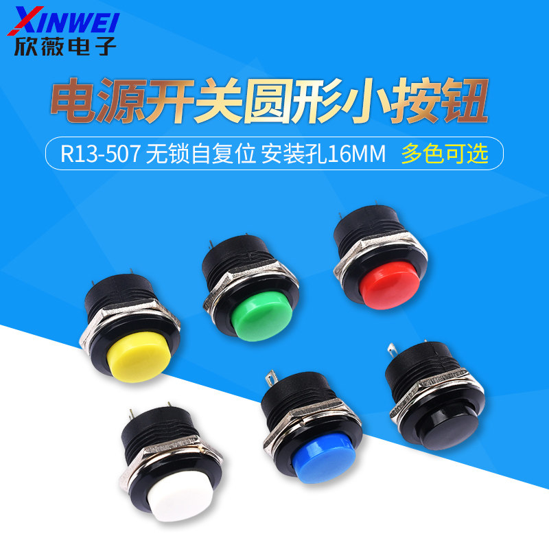 📚 按钮开关 R13-507开关16mm自复位圆形红绿黄色不自锁按钮点动开关