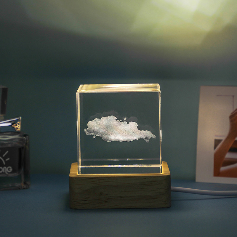 📚 发光云朵太阳系方体水晶小摆件办公室书房桌面装饰品送人生日礼物