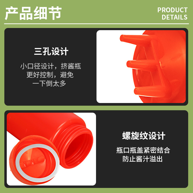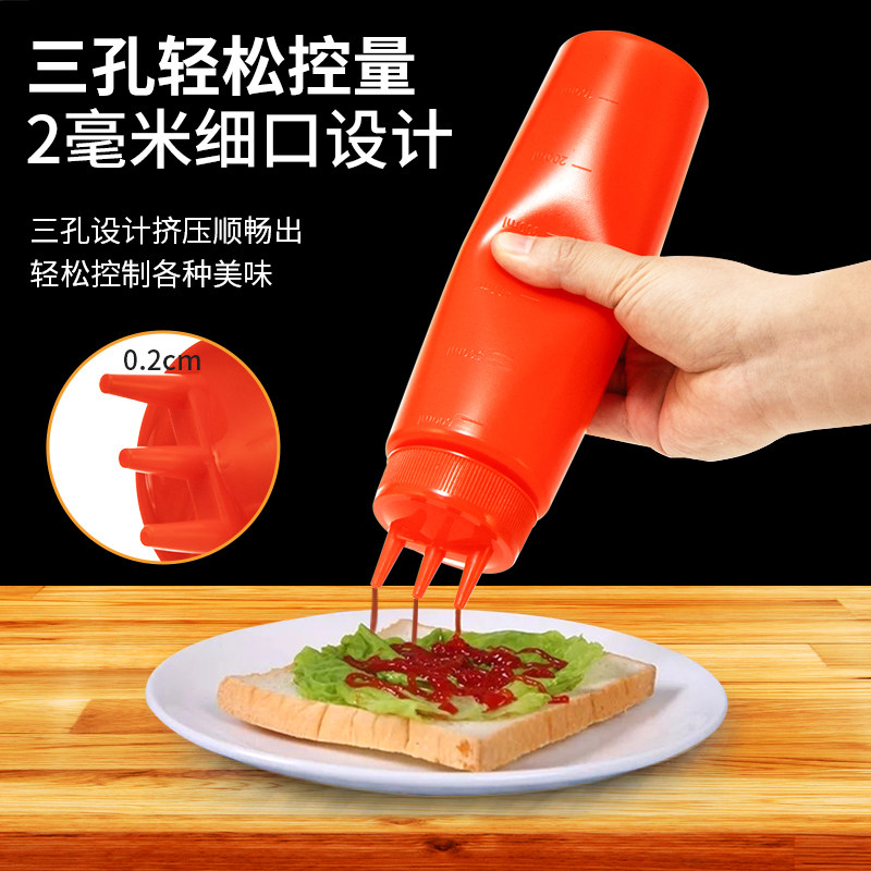 📚 挤酱瓶三孔挤压瓶番茄果酱沙律瓶奶油瓶酱汁调味辣椒壶三嘴沙拉瓶