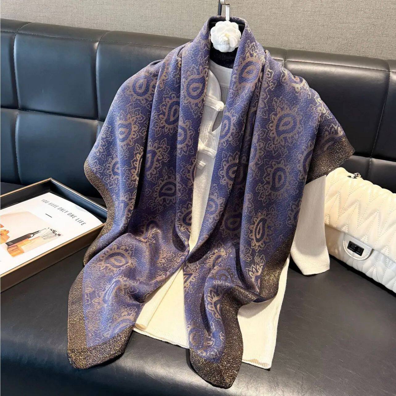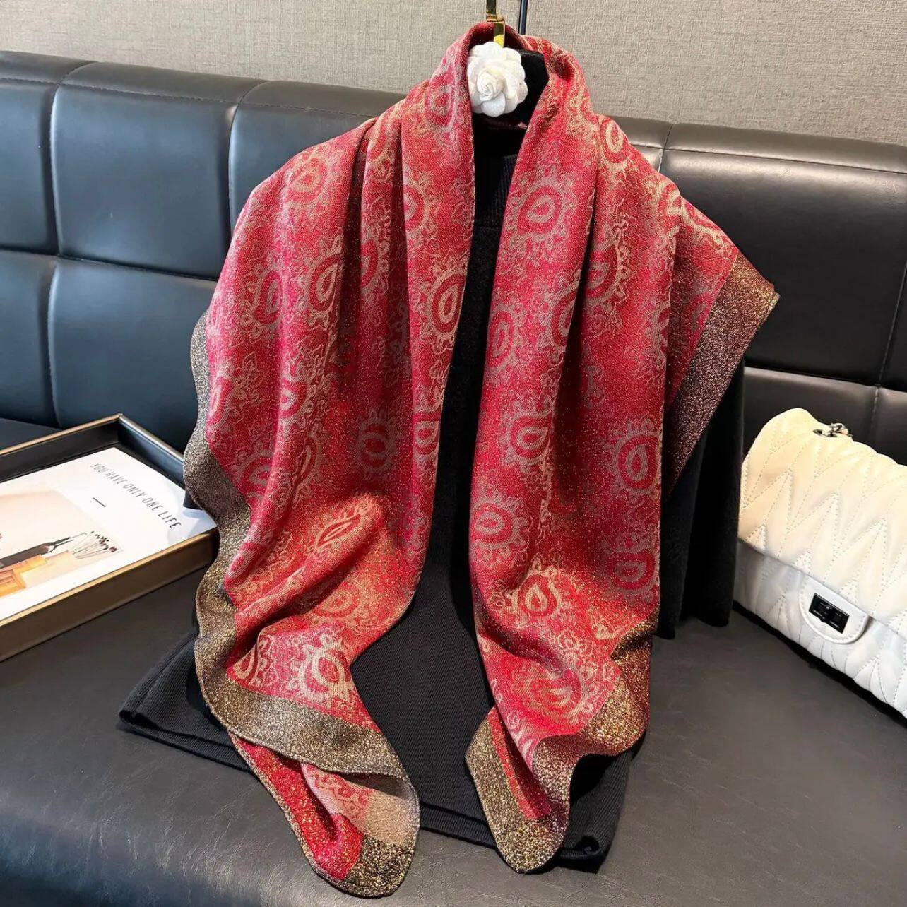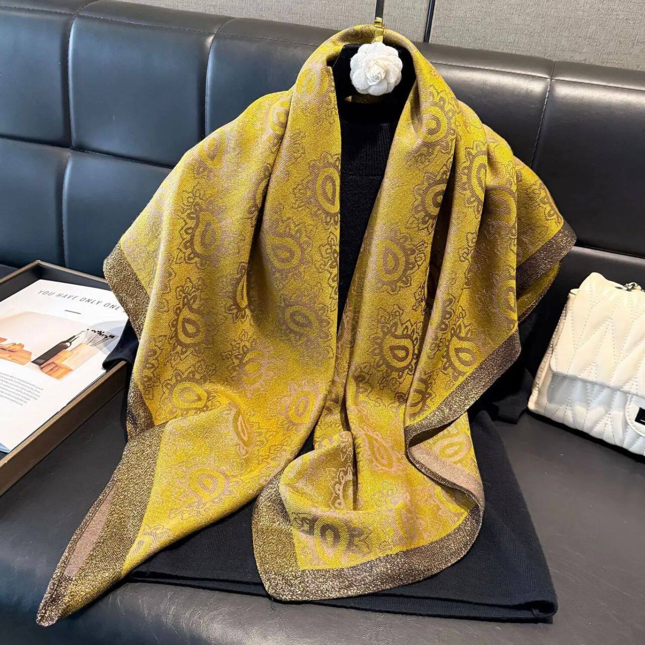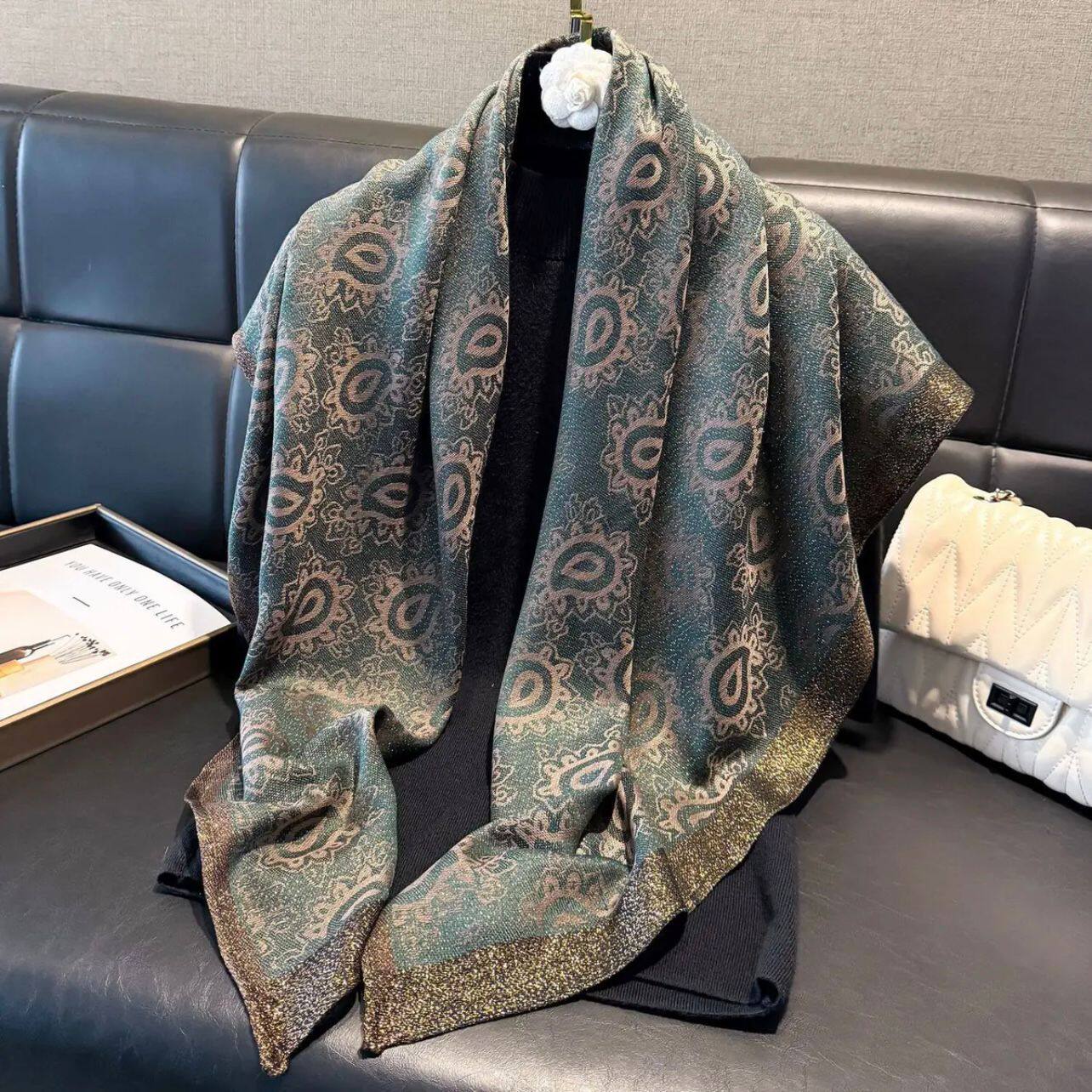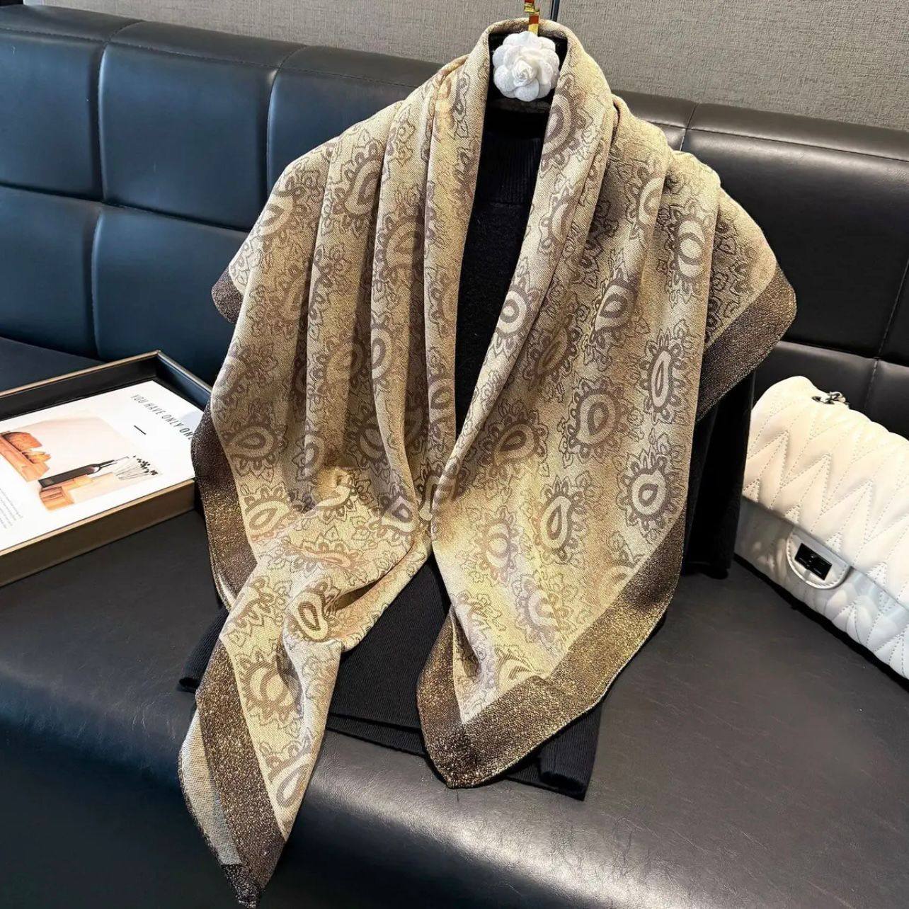 📚 【金丝银线】秋冬新款国风提花打方巾气质百搭复古时尚围巾披肩女